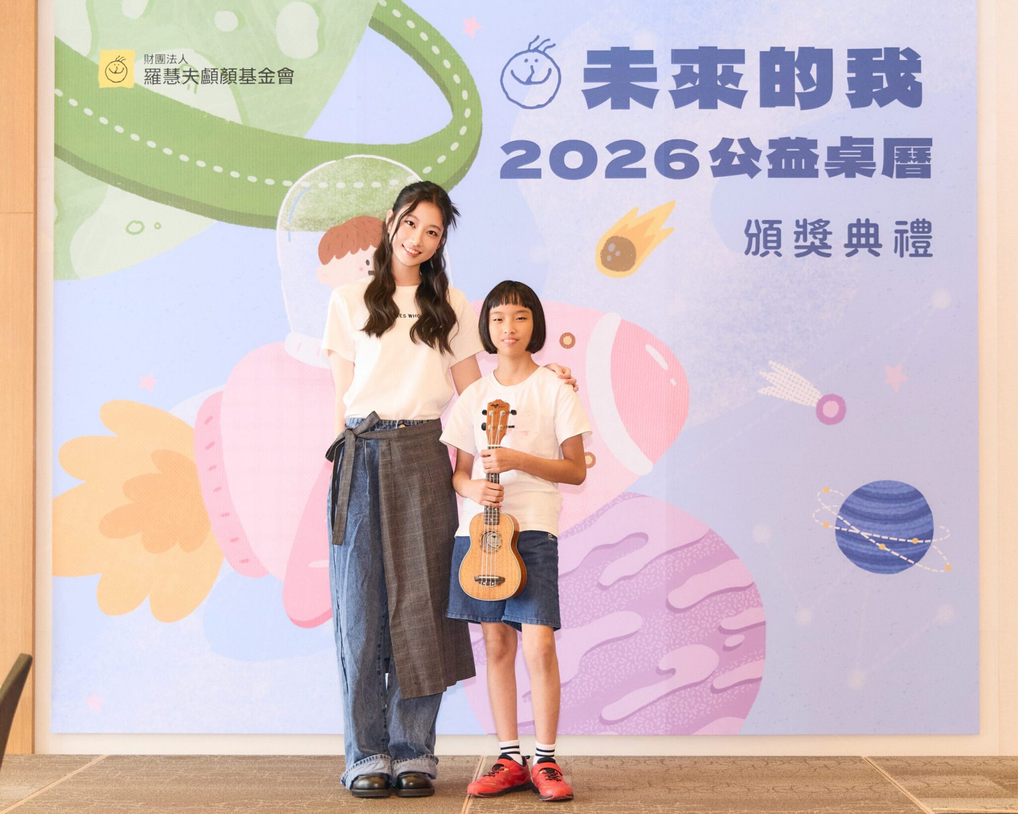 《未來的我》2026公益桌曆頒獎典禮,在10歲小耳症女孩陳采欣的烏克麗麗伴奏下與新生代歌手顧穎合作演唱《小星星》揭開序幕。也是本次公益桌曆得獎人之一的陳采欣說:「過去曾被同學嘲笑小耳朵,真的很難過,不過有基金會的陪伴和媽媽的鼓勵,我現在很喜歡自己的小耳朵, 這就是我的樣子。」海外得獎人— —15歲蒙古男孩塔米爾•布彦(TAMIR BUYAN 英文名TOM)患有唇腭裂,身穿蒙古傳統服飾,飛行3417公里來台灣領獎,他感性表示:「感恩羅慧夫顱顏基金會這十幾年的幫助,讓我擁有和大家一樣的笑容。這次公益桌曆的肯定,鼓勵我可以更有信心朝夢想前進。」。