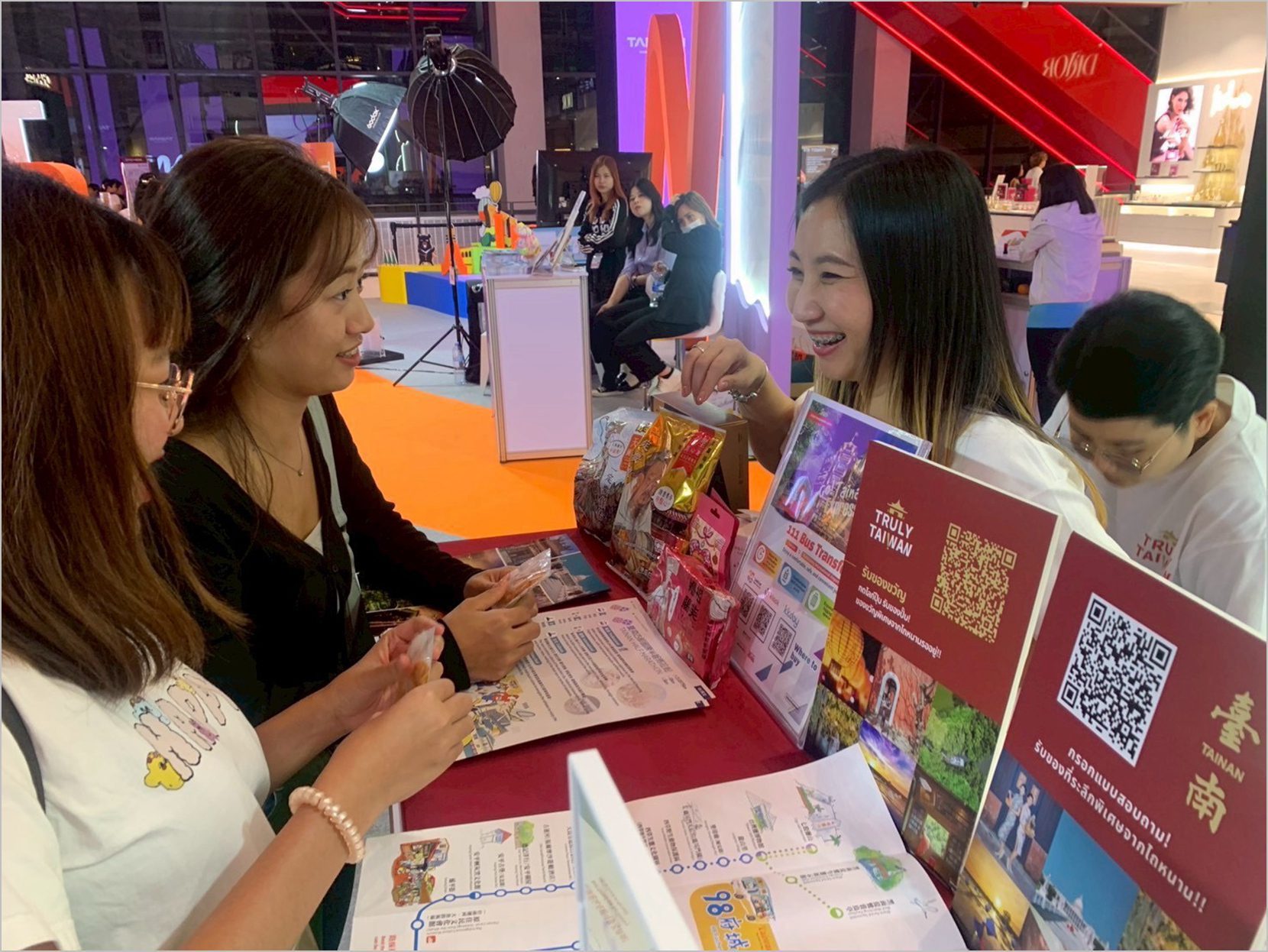 臺南市政府觀光旅遊局林國華局長表示,本次泰國旅展,臺南以「Truly Tainan」作為國際觀光品牌定位,透過充滿喜氣的紅色設計營造熱情氛圍,除了準備臺南文化、美食、散步路線、影劇、農特產等近20種觀光摺頁向泰國民眾介紹臺南多元的觀光特色,亦鎖定泰國旅客喜好,展示媽祖賜福、月老知我心軟糖等臺南限定伴手禮,向泰國民眾介紹古都特色及廟宇文化。本次更特別邀請泰國知名旅遊網紅Ratto家雯現身,以泰國民眾熟悉的語言與視角介紹臺南在地美食、文化與觀光活動,另泰國人氣樂團「No one else」也至現場表演並特別宣傳臺南觀光,進一步強化臺南與泰國年輕族群的連結,並擴大群媒體的宣傳效益。