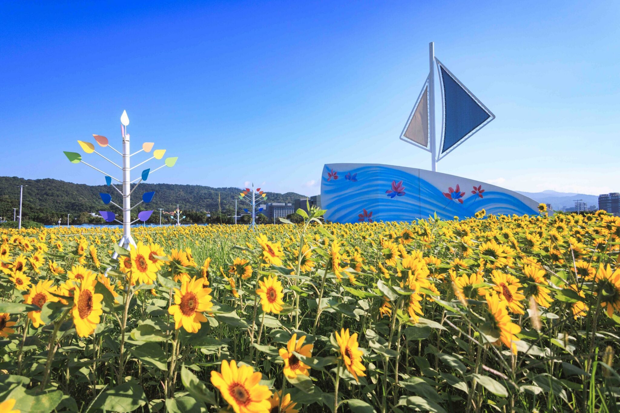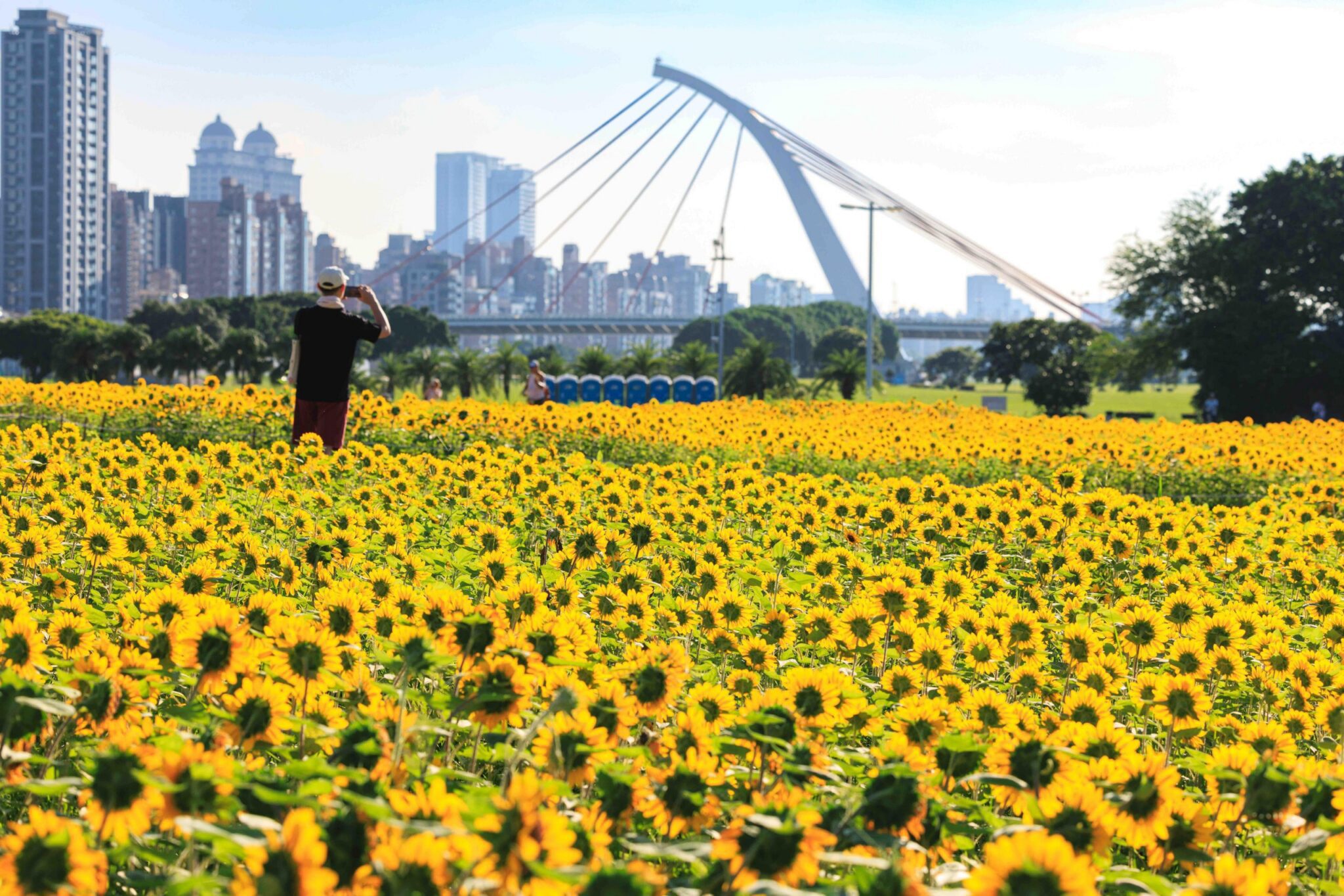 北市府水利處表示,賞花不用跑中南部,現在大佳河濱公園就有花海可賞,而且還是最吸睛的向日葵花海!目前莫內品種的向日葵已經盛開,賞花期預估至9月底,站在河濱公園裡放眼去,一片金黃燦爛的美景,絕對是打卡拍美照必去的景點!