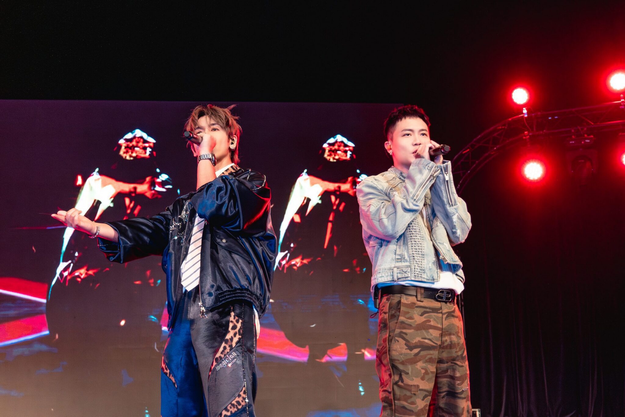 梁舒涵(右)首次攜手師弟Dylan(左)帶來新歌〈愛的超櫻樹〉舞力全開 照片提供:寬寬整合