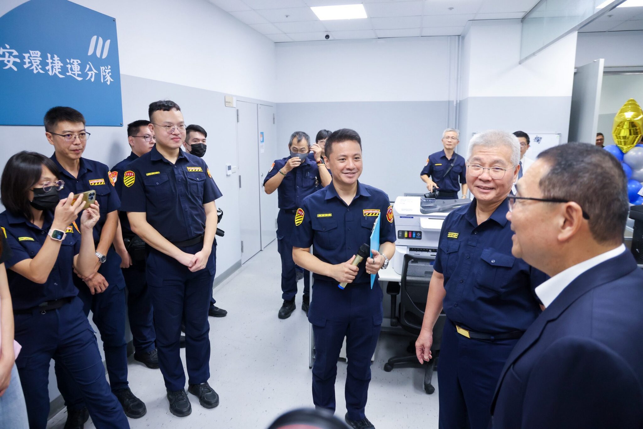 此外,新北市警察局交通大隊安環捷運分隊今日正式進駐南機廠,侯友宜指出,安環分隊地點鄰近十四張站,可迅速支援環狀線與安坑輕軌,提升即時應變與治安維護效率。除了目前已成立的捷運淡海與安環兩個分隊,預計於明(115)年三鶯線完工通車時同步成立三鶯分隊,並依捷運工程進度將陸續成立汐東、土樹及五泰等三個分隊,未來共計會有六個捷運分隊,與鄰近的臺北市、桃園市捷運警察緊密合作,共同守護民眾的乘車安全。