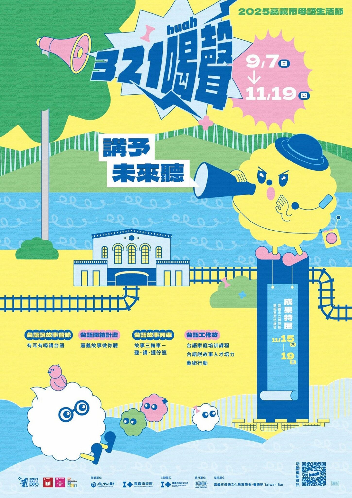 2025 嘉義市母語生活節【 321喝(huah)聲:講予未來聽 】相關活動訊息請上嘉義市政府文化局粉絲頁、嘉義市圖書館粉絲頁、阮的母語工作隊粉絲頁查詢