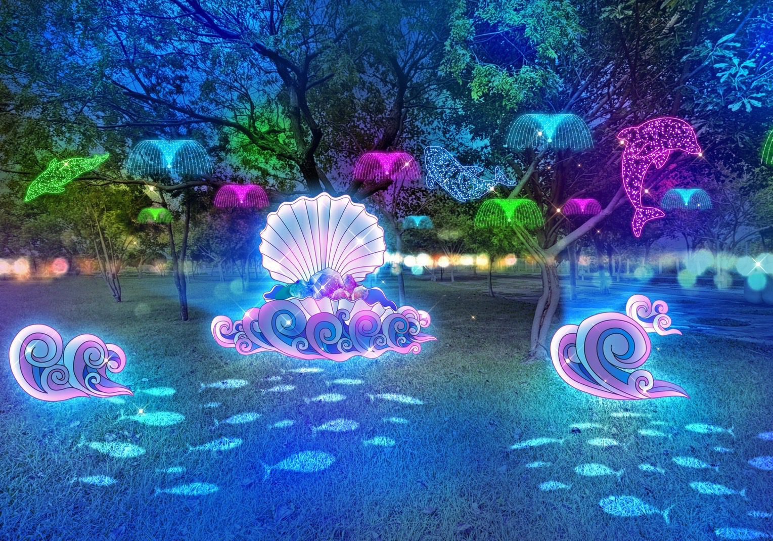 教育局表示,昨晚讓民眾駐足搶拍的「璀璨琉璃」燈組,周遭佈置著隨風搖曳的水母燈圍繞著緩緩一開一合的貝殼寶盒,地上還以光影投射出悠游的魚群,湛藍的氛圍光芒讓人彷彿置身海底一般,讓民眾驚呼連連!此外,鄰近的「奇幻森林」燈組,佈置著各式繽紛又充滿童趣的淘氣精靈,可愛又圓潤的造型搭配著不定時以泡泡機吹出泡泡,讓小朋友們彷彿置身在童話故事的奇幻世界裡,非常適合家長帶著小孩來欣賞教育局燈區,一起賞燈、拍照和打卡。