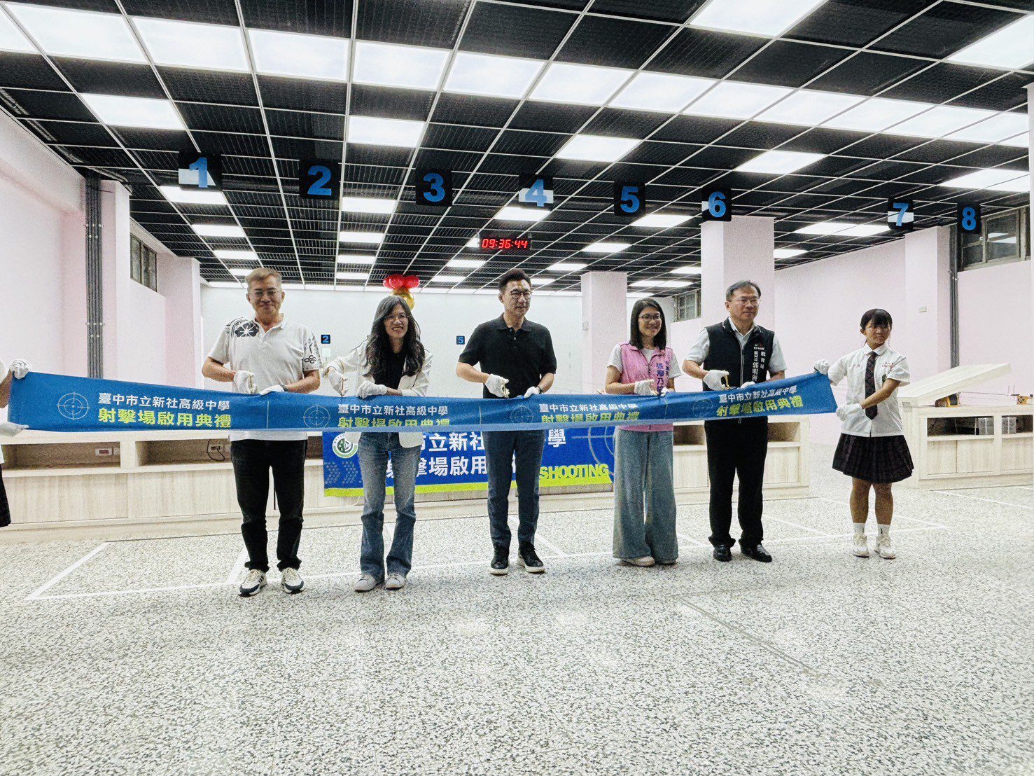 此外,新社高中自112學年度增設體育班,發展射擊及自由車運動,順利銜接國中的射擊選手,讓優秀選手續留台中升學,射擊場的啟用成為台中市高中教育在射擊運動發展的重要里程碑。