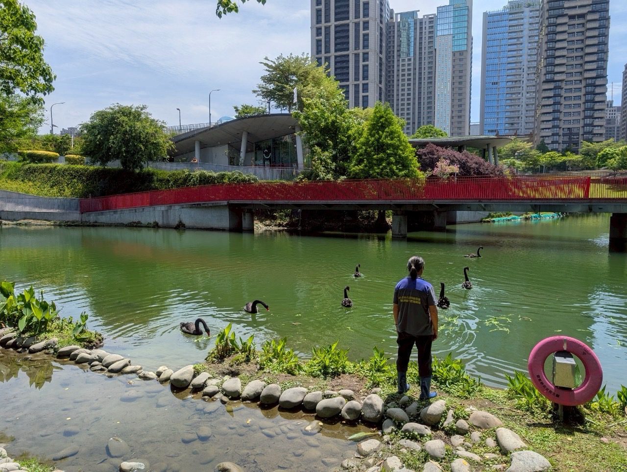 建設局表示,市府建設團隊長期推動公園水域優化、植栽整理與友善棲地復育,秋紅谷黑天鵝復育只是第一步,目前已拓展至豐樂公園,並延伸至台北市、台北大學及東海大學校園,讓黑天鵝在更多環境安居繁衍,也誠摯邀請市民朋友中秋節一同賞鵝踏青,體驗自然生態之美。