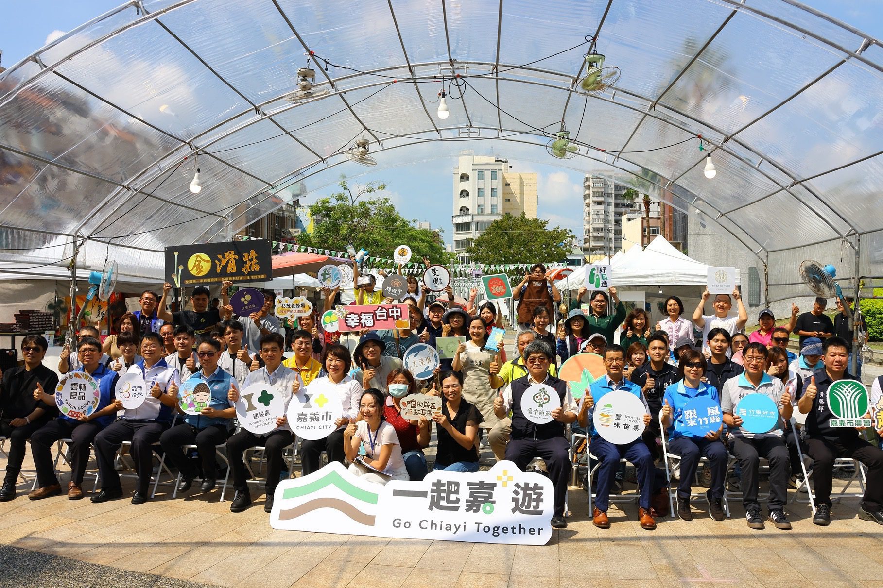 「一起嘉+遊-中台灣農創市集」今(20)日在嘉義市文化公園熱鬧登場,為期兩天的活動以「中台灣共好」為核心理念,串聯中台灣8大縣市農創品牌共同參與,展售各式特色農產與創意好物。嘉義市長黃敏惠到場與各縣市代表一同推廣優質農產品,並一一走訪各攤位,為攤商送鼓勵、攬人氣。市集人潮絡繹不絕,不僅市民熱情響應,也吸引許多外地遊客專程前來選購。