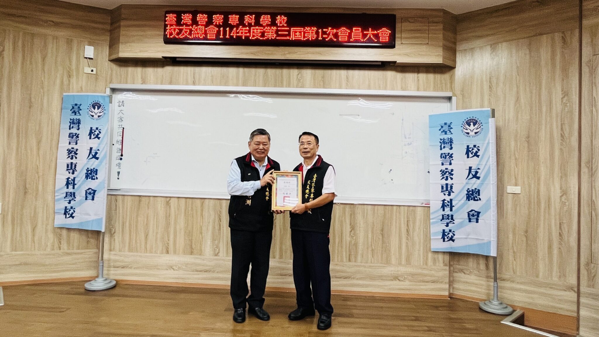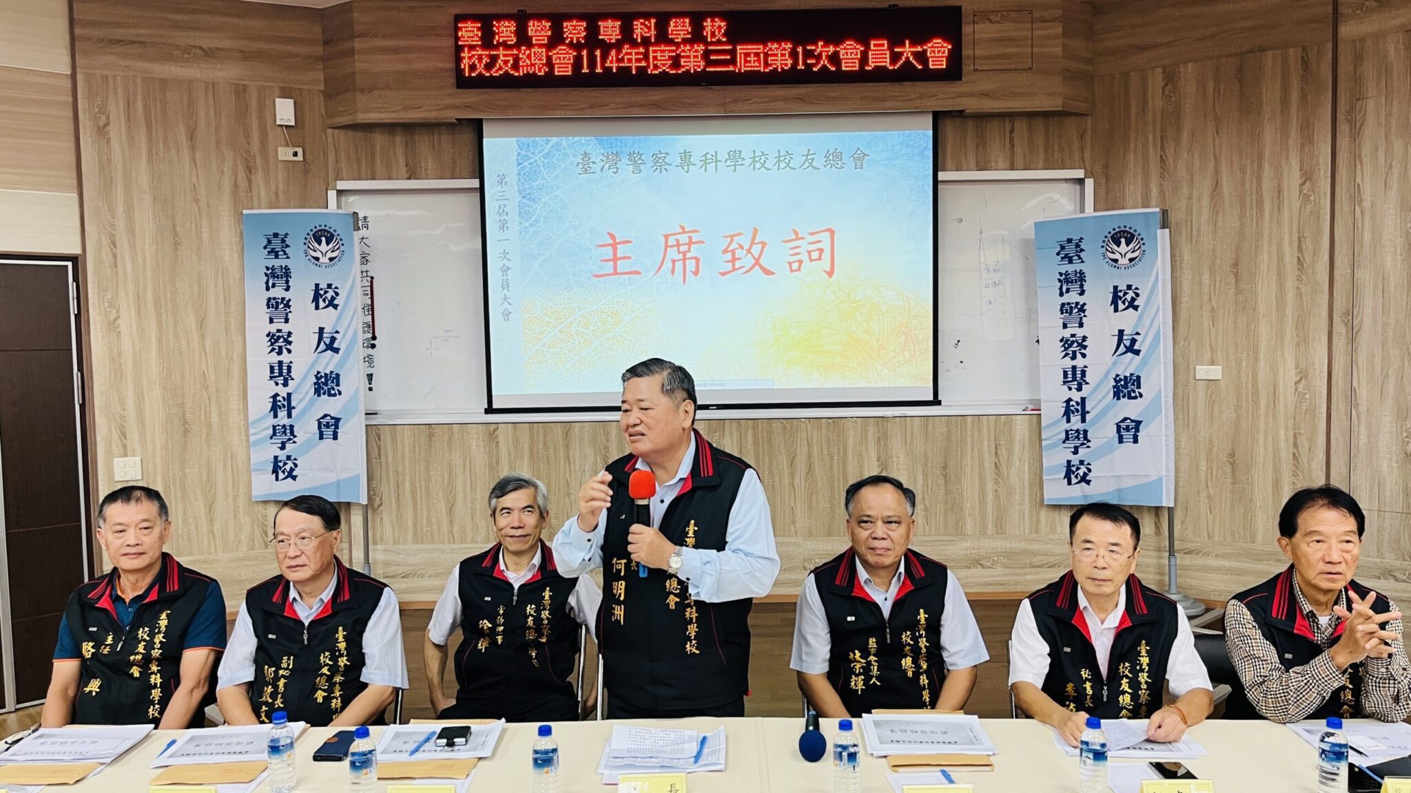 臺灣警察專科學校校友總會於114年9月19日(星期五)上午10時,假母校日新樓101會議室舉辦「第三屆第一次會員大會」,由會長何明洲博士主持,母校校長劉鴻烈、教育長張文瑞特地到場祝賀,並由主任秘書徐燕輝全程代表校方與會。會中共有218位會員及校友志工出席,出席情況踴躍,場面盛大。