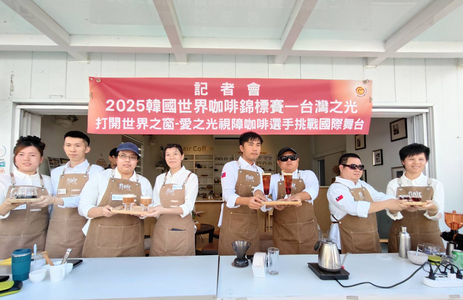 「每一道光的點燃,都是改變命運的起點!」台灣愛之光公益協會強調,Flair首席咖啡師兼創作歌手洪新智,以歌聲療癒人心,以咖啡追求人生;搭檔同為後天失明躲在家中20年的白博誌,以小時候的回憶「島嶼三重奏」,將洛神花、黑松汽水融入咖啡,希望用每一杯咖啡傳遞溫暖與希望,讓他們的這份堅持與熱情,能在世界舞台上綻放光芒,照亮更多人心。透過這次韓國國際錦標賽,他們希望讓更多人看見視障咖啡師的專業與努力,並邀請社會大眾共同支持,為夢想注入更多溫暖的力量。