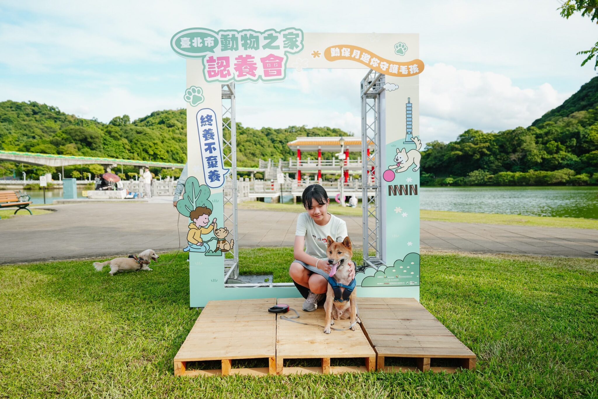 臺北市動物保護處20日在湖畔景色優美的大湖公園舉辦2025臺北動保教育月系列第2場活動,以「臺北市動物之家認養會」為活動主題,帶著個性乖巧的狗狗「默默」走出動物之家與民眾互動及推廣認養,該會在現場更辦理了2場犬貓習性課程,讓民眾更深入了解毛孩的語言與照顧方式。