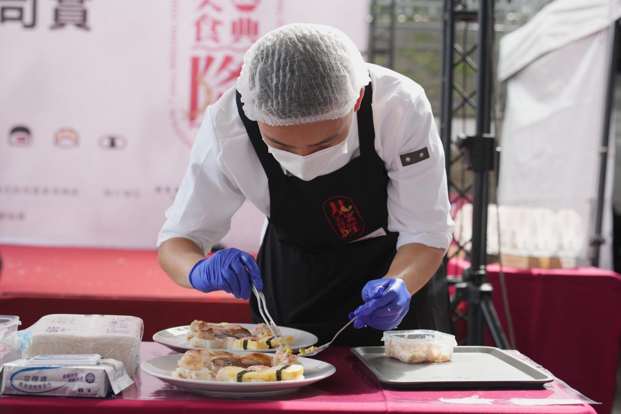 市集雲集蓉記壽司、逸番亭、藏漁殿、多馬和食、晟壽司等十家在地壽司名店,加上甜點與飲品攤位,吸引排隊人潮。大會準備的1,000張壽司兌換券於兩波發送完畢,許多民眾笑說「今天來得早,才有機會搶到!」此外,免費「壽司手作體驗」課程深受親子喜愛,小朋友在老師指導下完成屬於自己的壽司作品,成為今日最溫馨的畫面。
