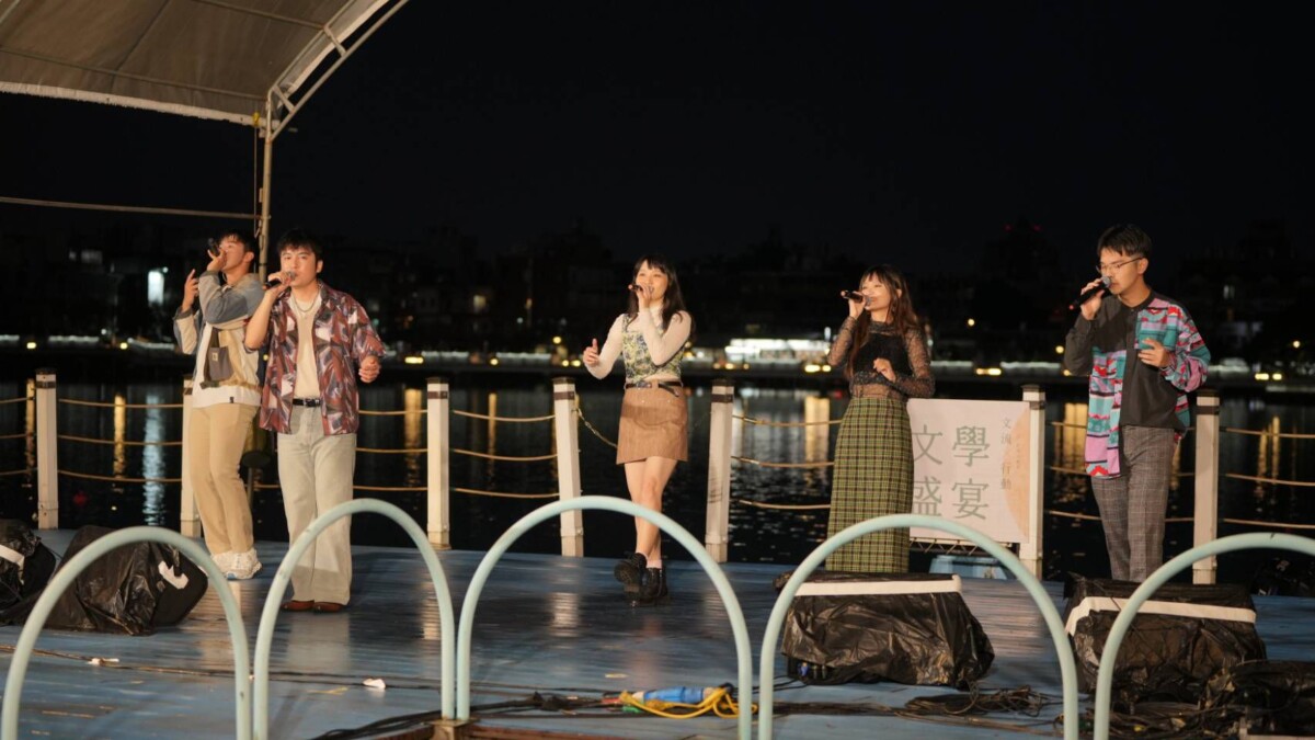 開場節目由莫比斯圓環創作公社帶來四幕沉浸式劇場《大池乘光》,演出從龍潭大池的神龍傳說與聖蹟亭歷史展開,接續帶出臺灣文學大師鍾肇政的文學精神,以及與黃永松共同發起的「搶救聖蹟亭」文化行動,最終以對未來文化傳承的期許作結尾,完美詮釋客家文學脈絡。現場邀請多組樂團帶來精彩的演出,包括留聲樂團以融合古典與流行的人聲表演、龍潭客家女聲葉鈺渟溫暖醇厚的客語歌曲,以及全客語創作歌手王喬尹的現代客語創作,各團隊皆透過音樂藝術表達對龍潭這塊文學沃土的敬意與傳承使命。