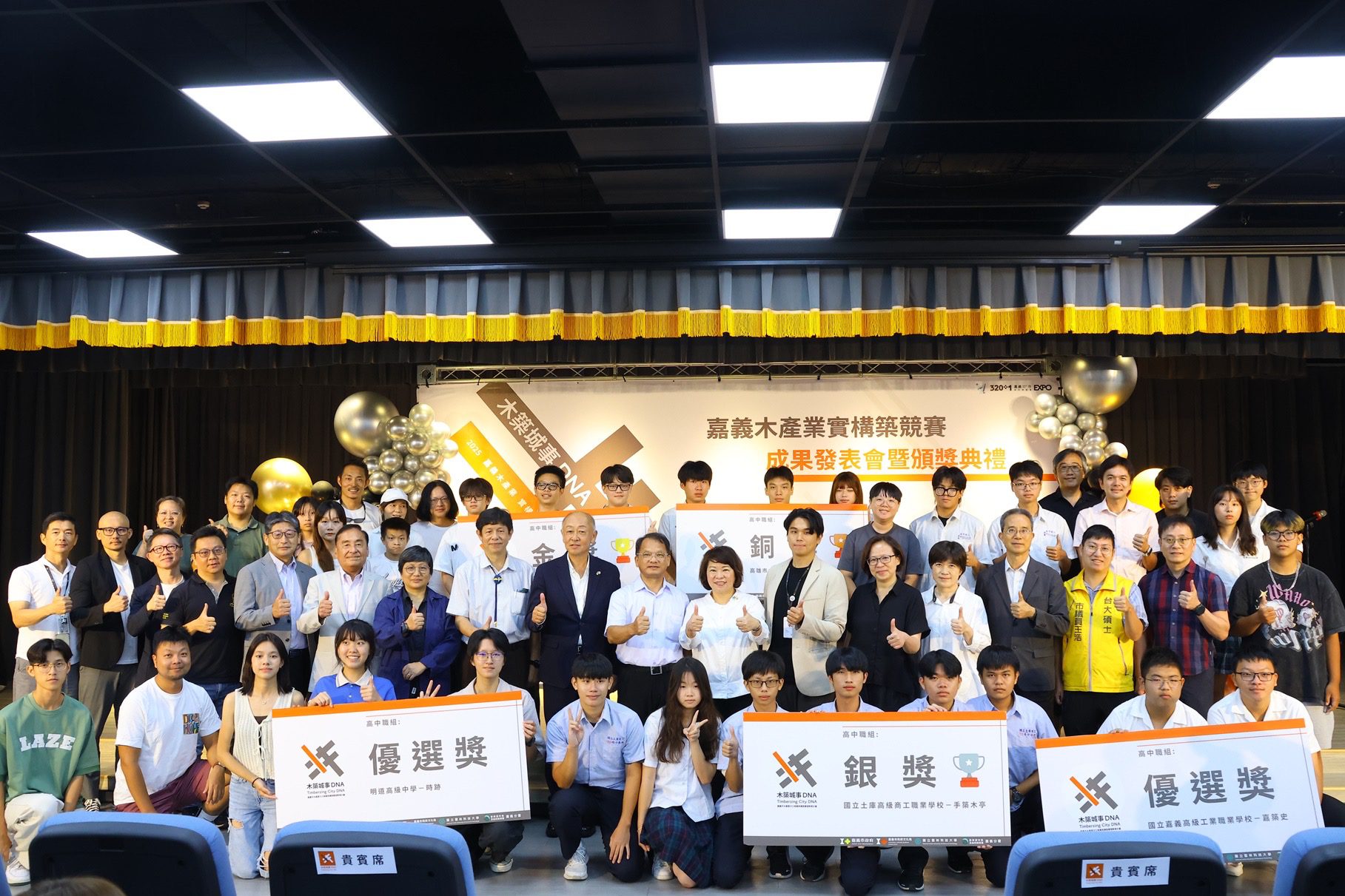 今日活動,林業署嘉義分署長李定忠、贊助商日商美福股份有限公司 小澤聖輔社長、商聖宜部長及聽聞嘉義木都美名而來的日本福井學園 淺井光理事長、山内悟副校長及參賽學校師生、家長齊聚,共同見證榮耀時刻,現場熱鬧溫馨。