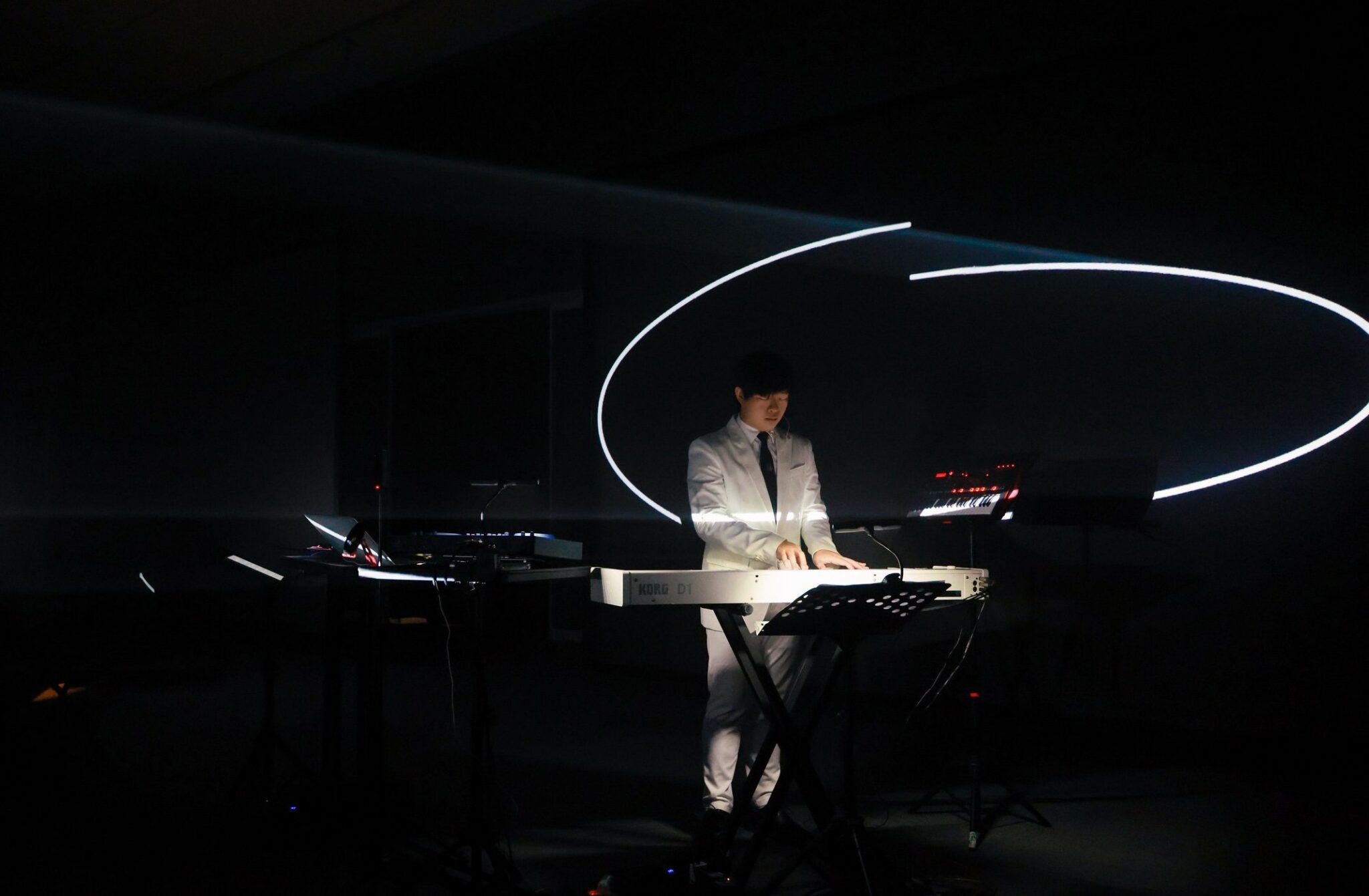 全場曲目皆為原創音樂,蔣榮宗融合電子聲景、合唱、人聲、弦樂與自然環境音,打造層層遞進的聲音結構,以〈Face to Face〉、〈Line Describing a Cone〉、〈Meeting You Halfway II〉、〈Leaving with 2-Minute Silence〉四件代表作為聲音軸心,展開 20 分鐘不間斷演出。「這次籌備花了三個月,從發想到音樂風格、再到如何在只有固體光的黑暗環境下演出,都是挑戰,連樂譜和琴鍵都幾乎看不清楚,只能靠手感和身體記憶來完成。」