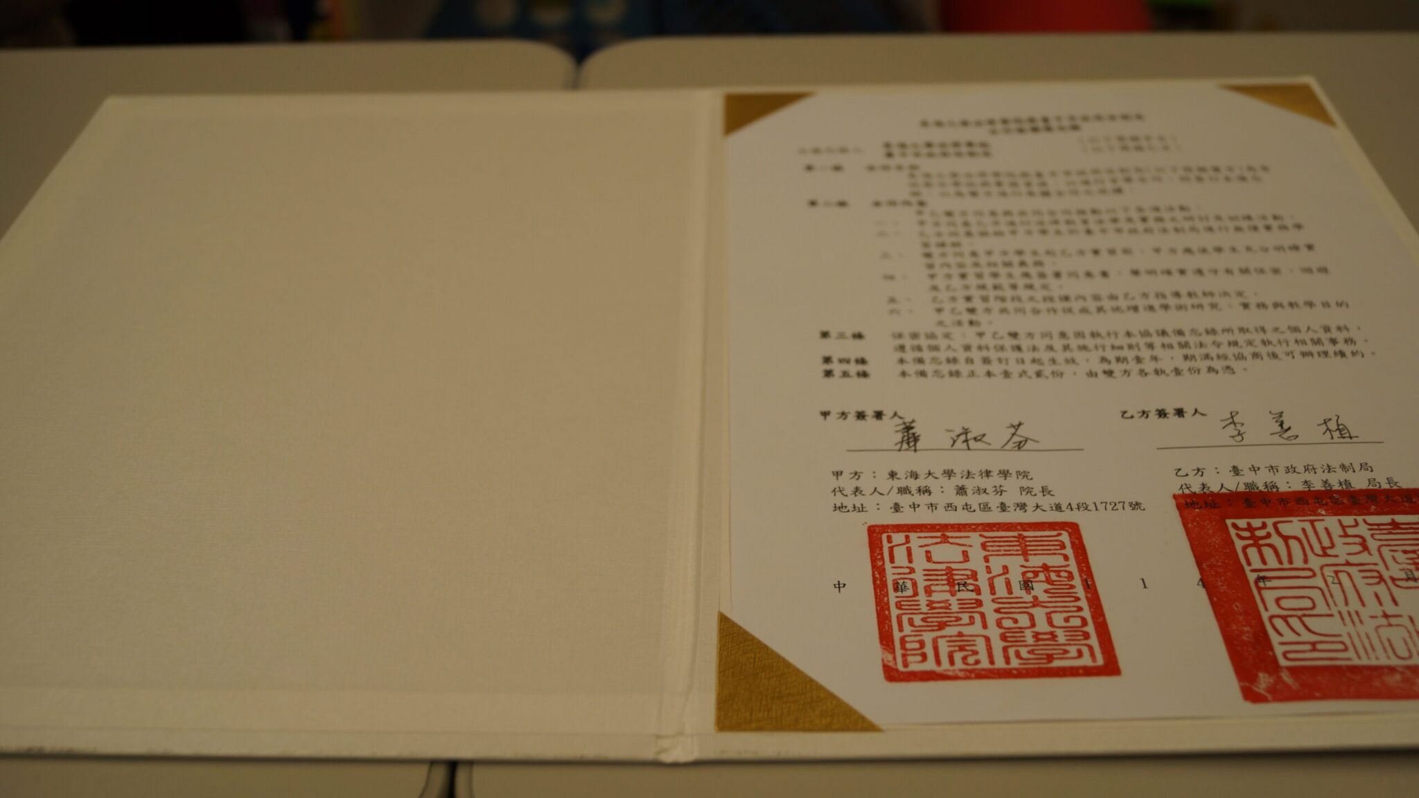 為推動法律專業人才的培育及實務經驗的融合,台中巿政府法制局今(10)日與東海大學法律學院正式簽署實習合作備忘錄(MOU),這是繼中興大學後,與中台灣第二所法律學院合作。此次合作旨在結合學術資源與實務經驗,培養具備專業素養及實戰能力的法律人才,進一步促進法治社會的發展。