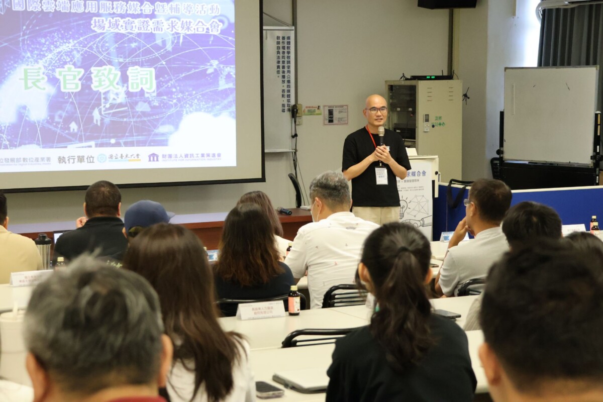 由數位發展部數位產業署主辦、臺東大學與資策會數位轉型研究院共同執行的「國際雲端應用服務媒合暨輔導活動-場域實證需求媒合會」,於114年9月20日下午在臺東大學產學創新園區教學大樓視聽教室B熱烈登場。本次活動以「智慧長者陪伴機器人」為核心主題,透過「學界出題、師生與業界解題、法人陪跑」的新模式,促進產官學研的跨域合作,為東部數位創新與AI應用開啟新篇章。