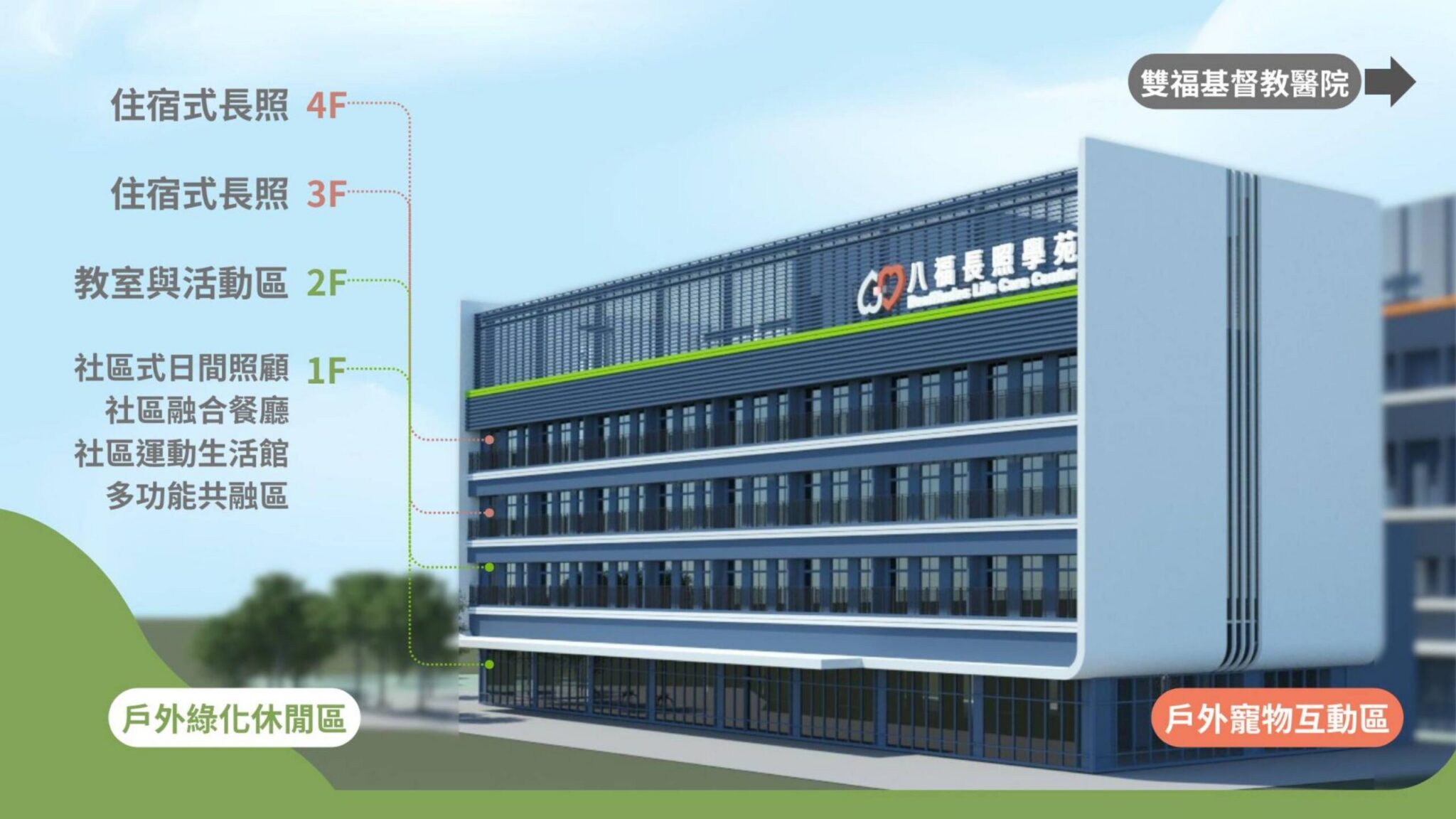 「長照機構不只是提供照顧,更是能學習、療癒與重拾自我價值的『家』。」嘉義基督教醫院陳煒院長表示,八福長照學苑與一般長照中心不同之處,是結合「日間照顧」與57床「住宿式長照」等多元服務,讓大嘉義地區的家庭能依據生活特性與不同的健康需求,選擇更適切的服務方案。其中也規劃大齡食堂、運動中心、多元共融共學空間、戶外綠化休閒區與寵物互動區等,兼顧關照長者及家屬的身心靈療癒。