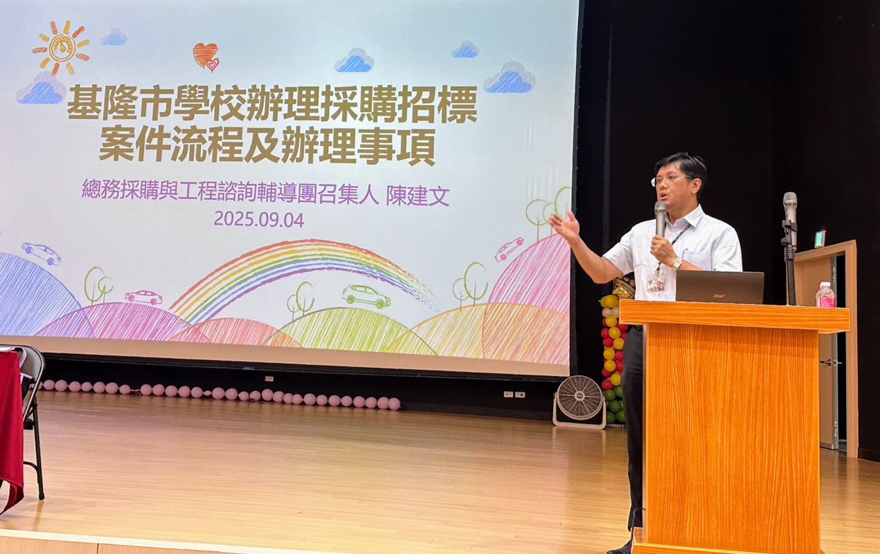 教育處前於舉辦學校資深總務主任表揚活動,向長年默默奉獻的主任致敬,並由總務採購與工程諮詢輔導團召集人陳建文校長於活動中分享手冊應用重點與實務案件經驗。由於學校總務業務繁雜,從校舍整修、校園環境營造到採購招標,皆攸關師生安全與教學品質。教師兼任總務主任或採購人員,實務上常面臨業務不熟悉或程序複雜等困境,致使學校總務工作教師接任意願低落,不僅增加行政負擔,也影響計畫推動與經費效益,因此總務輔導團編輯基隆市學校招標採購流程及辦理事項手冊,收錄學校採購標準作業程序、簽案範例及各階段注意事項,讓新手總務主任能快速上手,資深同仁也能隨時查閱,降低錯誤風險,提升校務行政效能。