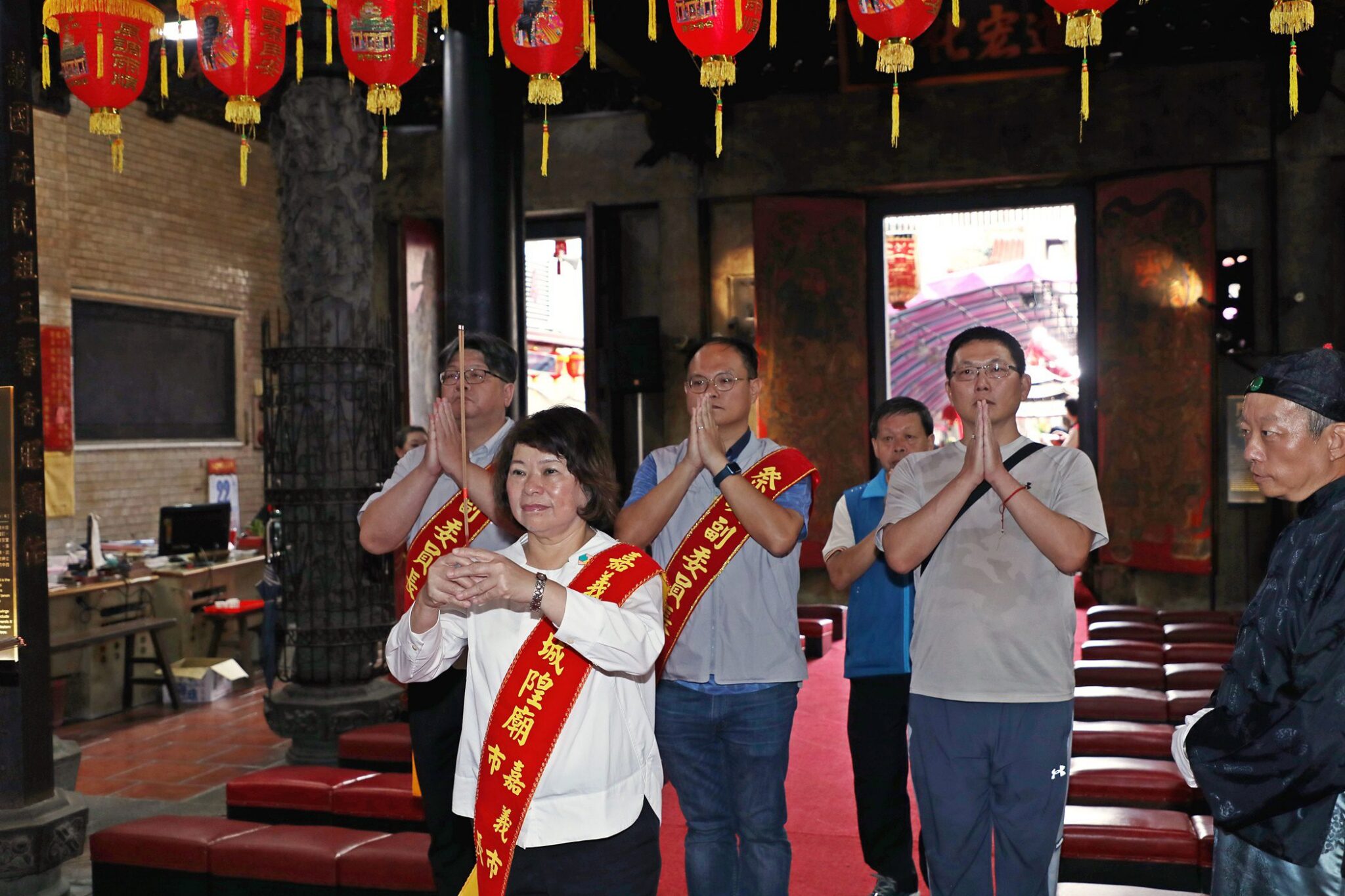 黃敏惠祈願在城隍尊神護佑下,風調雨順、國泰民安,亦祈求市政建設皆可推動順利,讓嘉義市更為蓬勃發展,也期待未來有更多的遊客來嘉體驗悠遠而豐富的人文魅力,讓旅客一起愛上這座城市。