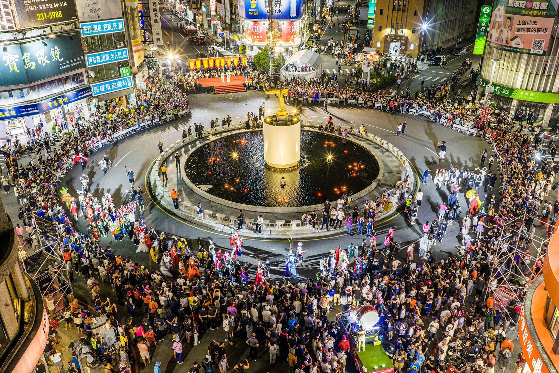 晚間更於嘉義市地標噴水圓環舉辦特色表演,由160人共同操演百米巨龍九子陣,巨型神將人偶遊行等,更有莊嚴的夯枷解厄儀式,更結合嘉義在地特色的吉祥社大二爺、吉勝堂什家將,夜巡陣容精采可期,活動現場人潮滿滿,氣氛熱鬧非凡,替為期一個月的嘉義中元祭畫下完美的句點,也為今日城隍尊神聖誕進行暖壽。
