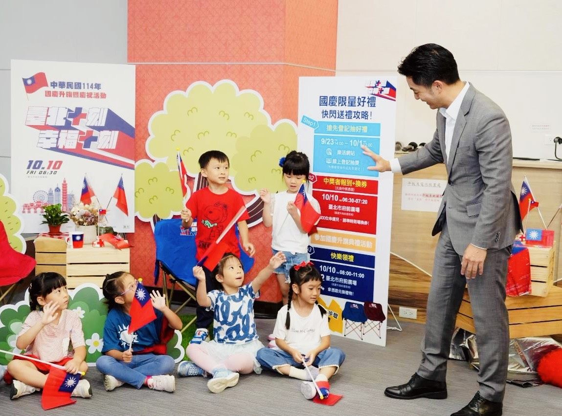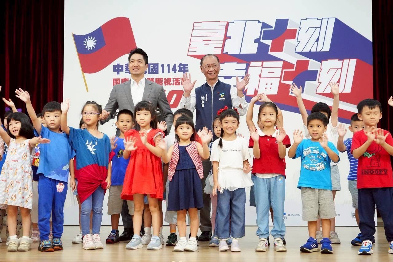 臺北市長蔣萬安表示,今年國慶口號選定「臺北十刻 幸福十刻」,傳達城市幸福日常與國慶的喜悅,並首度以親子共樂、全民參與的活動形式於市府廣場舉辦一場「國慶升旗歡樂派對」,期盼帶給市民新的參與體驗,使國慶成為全民共享的節日,也讓孩童從小感受國慶意義。