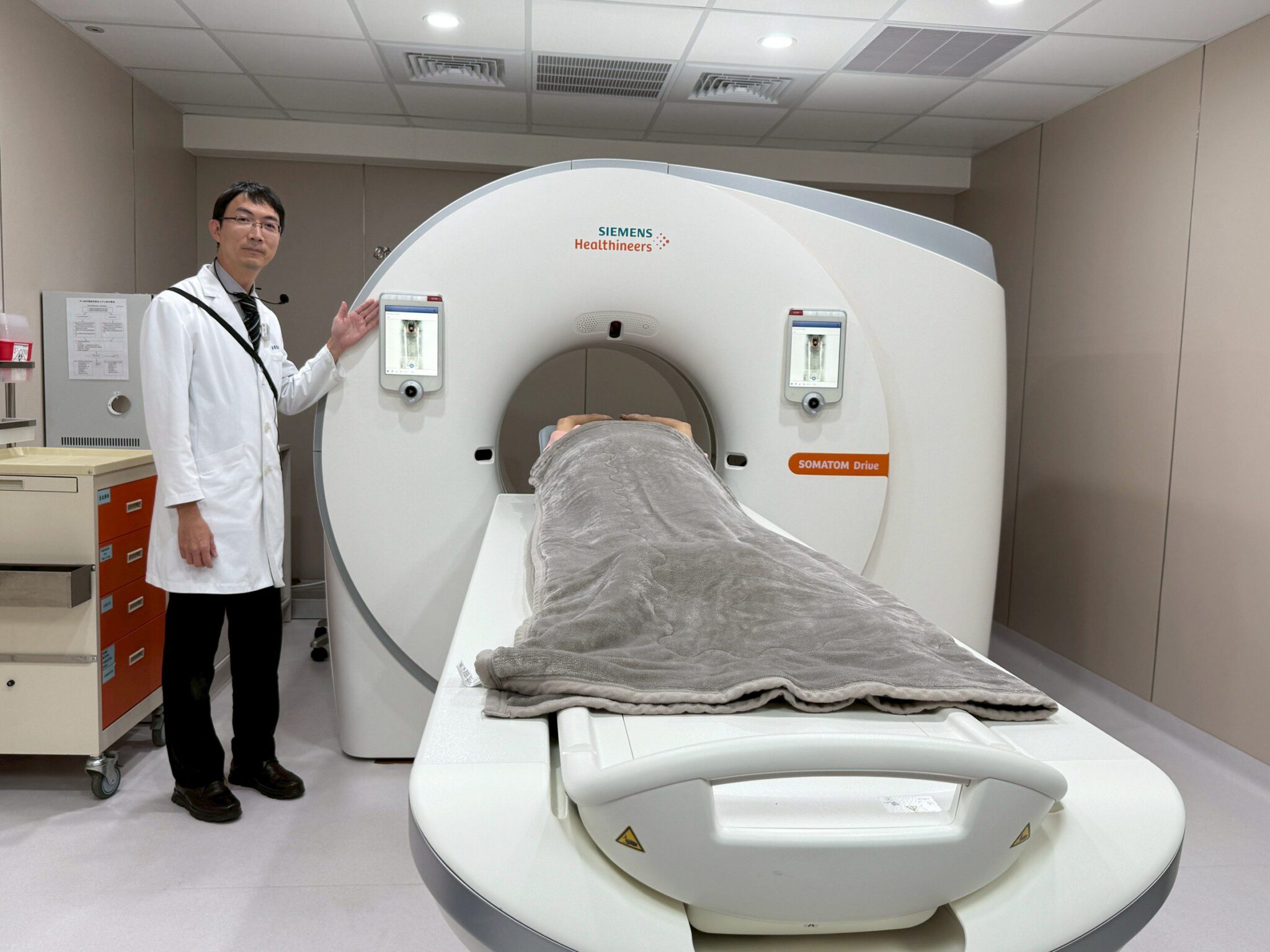 醫學中心張程光主任表示,中心醫院新添購的電腦斷層與磁振造影設備,都結合了AI技術,能自動判斷身體位置,減少人為操作誤差,並在降低輻射的同時,依舊呈現清晰影像。檢查過程中,機器還能依照呼吸狀態自動調整,縮短時間又提升準確度,讓病灶更容易被看見。張主任强調,AI還能幫助醫師看得更仔細;藉重醫院所導入的AI輔助診斷系統,特別針對常見癌症進行檢查,包括肺癌篩檢,AI能自動偵測小結節,比對過去影像,幫助醫師提早發現異常。 大腸癌篩檢,AI在內視鏡檢查中,提升息肉的發現率,即使長時間檢查,醫師也能維持高準確度,降低漏掉病灶的風險。