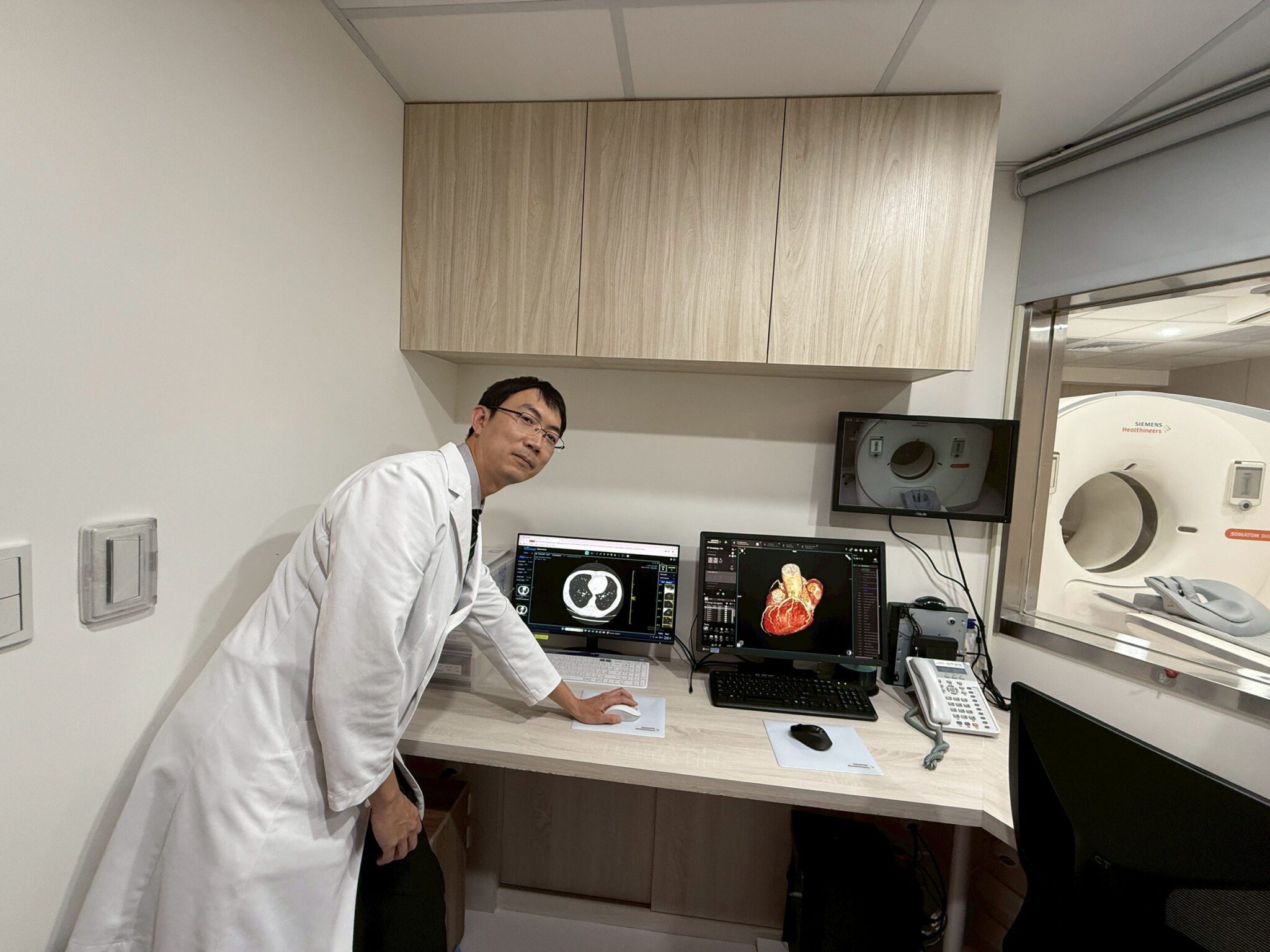 醫學中心主任張程光說明LDCT低輻射劑量電腦斷層掃描的AI操作。圖/中心醫院「高階醫學影像中心」提供