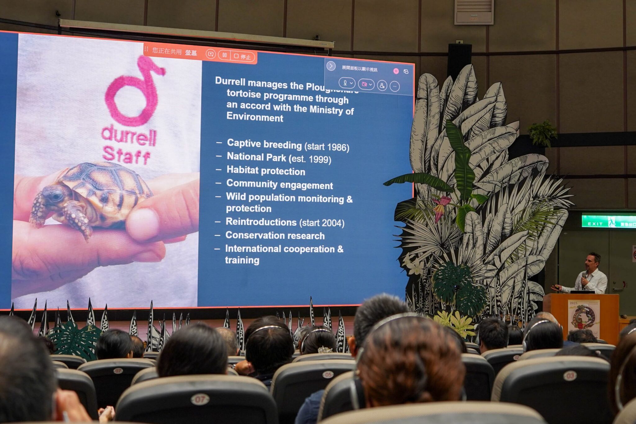 此次「日本-臺灣爬蟲兩棲類學合同大會暨日本爬蟲類學會第64屆年會(Japan-Taiwan Joint Conference on Herpetology & The 64TH Annual Meeting of the Herpetological Society of Japan)」學術交流會議,邀請到英國杜瑞爾野生動物保育信託基金暨澤西動物園的爬蟲動物學專家Matt Goetz分享國際極度瀕臨絕種野生動物─馬達加斯加島安哥洛卡象龜 (Ploughshare Tortoise)的域內域外保育挑戰,及動物園在瀕危物種保育上無可迴避的角色與責任。