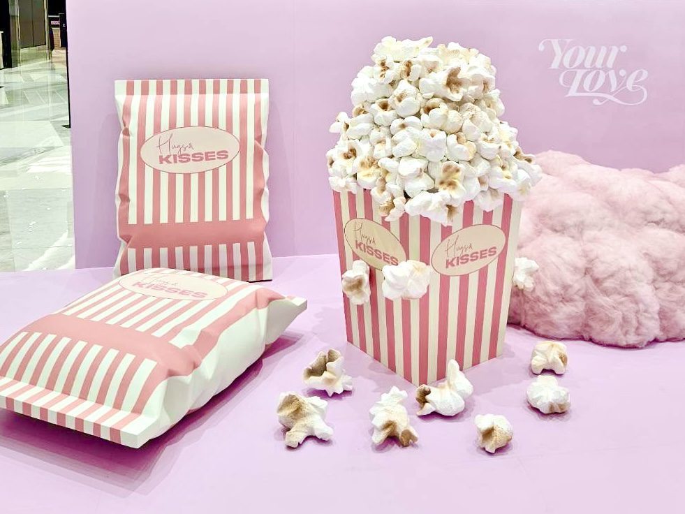 下午在Jisoo的個人IG視覺海報釋放出之前,上週末已有眼尖的粉絲發現,在信義區的DREAM PLAZA一樓已有裝置藝術悄悄放置。以大片粉色夢幻元素建構的裝置藝術,象徵 BLACKPINK 成員 Jisoo 歌曲〈Your Love〉的浪漫氛圍。場置中央「Your Love」字樣映襯在柔軟雲朵般的粉色棉絮之間,將歌曲裡宛如夢境的甜美具象化。而一旁以爆米花元素延伸的「Hugs & Kisses」主視覺,則以俏皮細節增添趣味感,讓粉絲仿佛走進一場粉紅色的浪漫電影。整體設計兼具時尚與夢幻,不僅完整呈現歌曲與品牌的雙重意境,更成為 BLINK 們熱烈打卡的必訪場景。