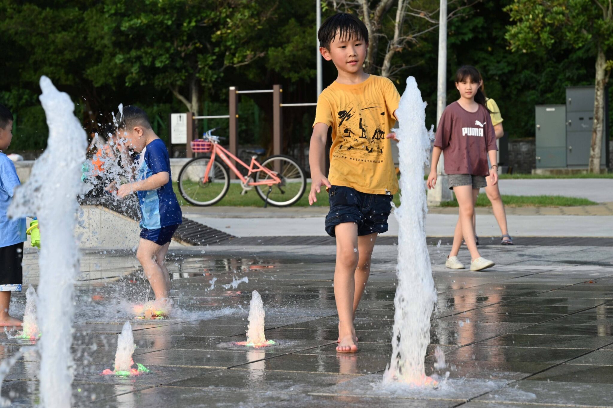 派對現場一旁設有水舞噴泉,方便大人跑趴聽電音、小朋友也能戲水降溫兼放電。 照片提供:台北市政府觀光傳播局