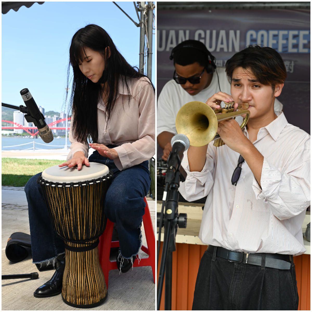 非洲鼓手陳采葳(左)小號手李宇宸(右)的現場演奏為咖啡派對增色許多。 照片提供:台北市政府觀光傳播局