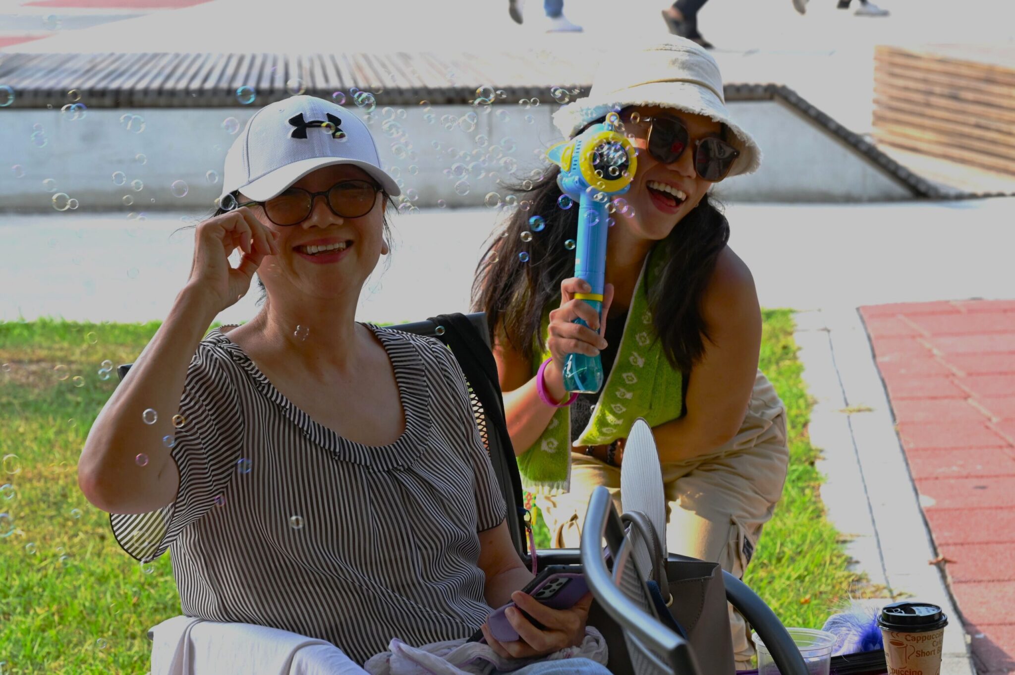 咖啡派對適合全齡朋友參與,有樂迷把家中長輩拎出門,來到關渡碼頭吹風聽音樂。 照片提供:台北市政府觀光傳播局