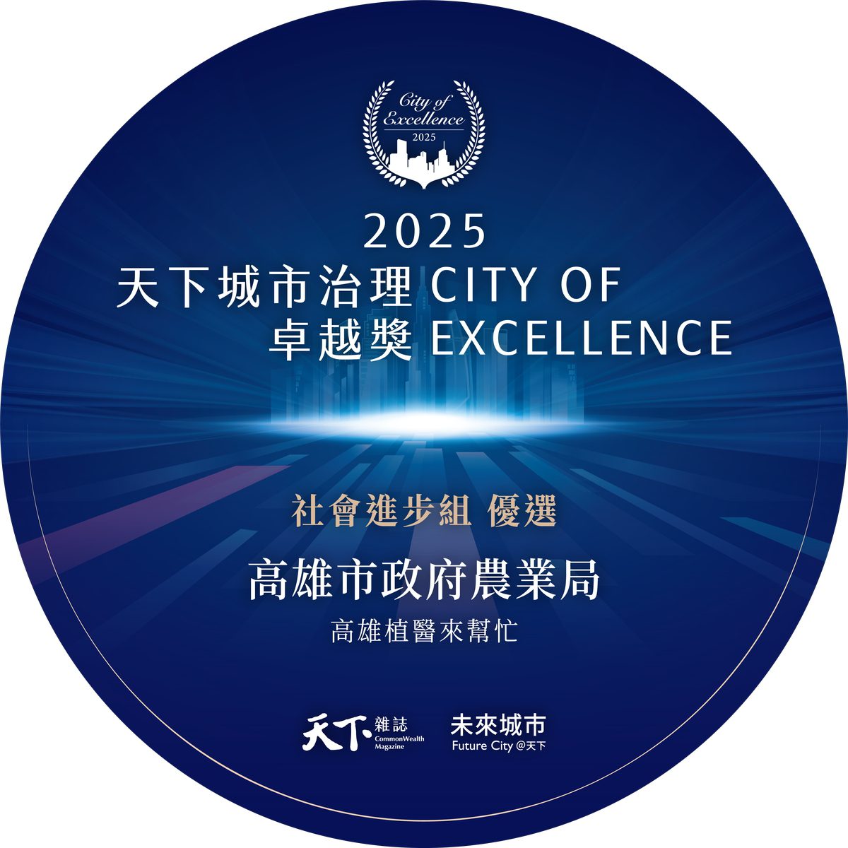 高市府農業局推動的創新服務「高雄植醫來幫忙」,自全國 22 縣市、171件參賽專案中脫穎而出,榮獲《天下雜誌》2025城市治理卓越獎—社會進步組優選,為智慧農業再添榮耀。