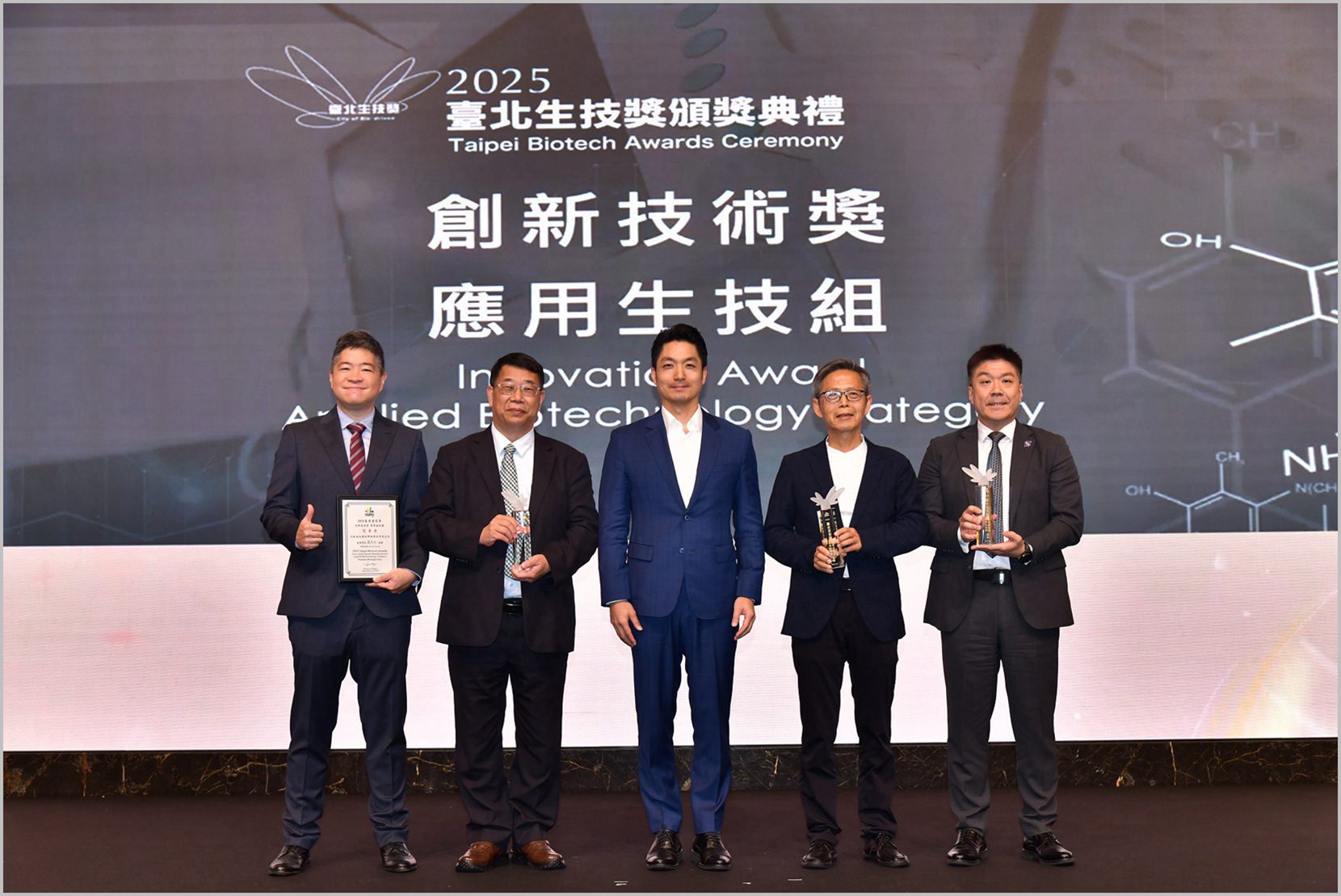 生技產業奧斯卡級榮耀「2025臺北生技獎」今(9/24)由蔣萬安市長親自揭獎頒發「創新技術獎_醫療器材組」、「創新技術獎_製藥組」、「創新技術獎_應用生技組」、「國際躍進獎」、及「跨域卓越獎」五大獎項及特別獎-臺北生技之星獲獎企業單位,頒發總獎金520萬元。