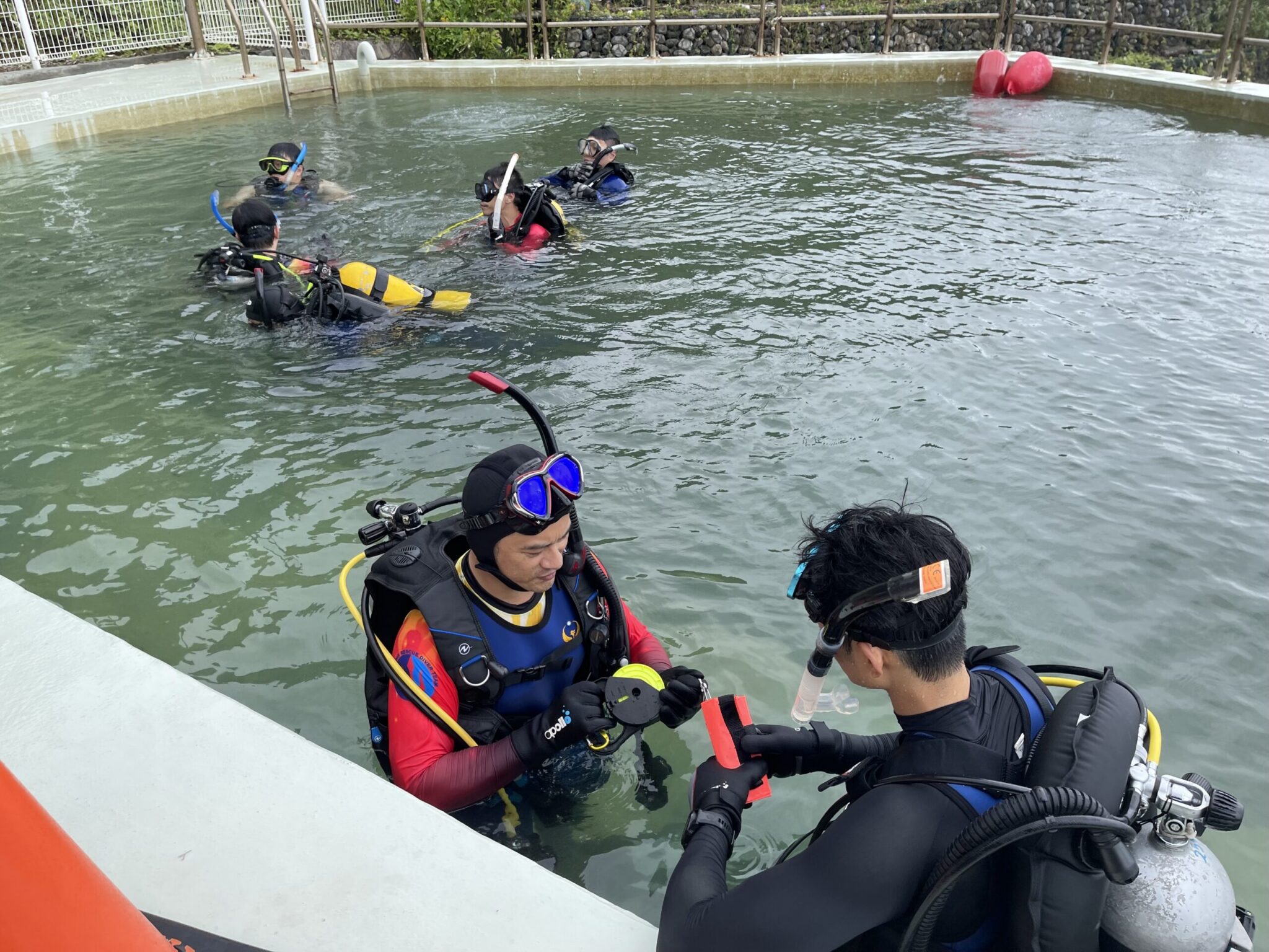訓練地點在新北市貢寮區龍洞灣海洋公園潛水服務區,因受到颱風的外圍環流影響,本次訓練地點安排在戶外訓練池進行,該場域設施完善、環境安全,提供同仁最佳的學習環境與實戰演練條件。