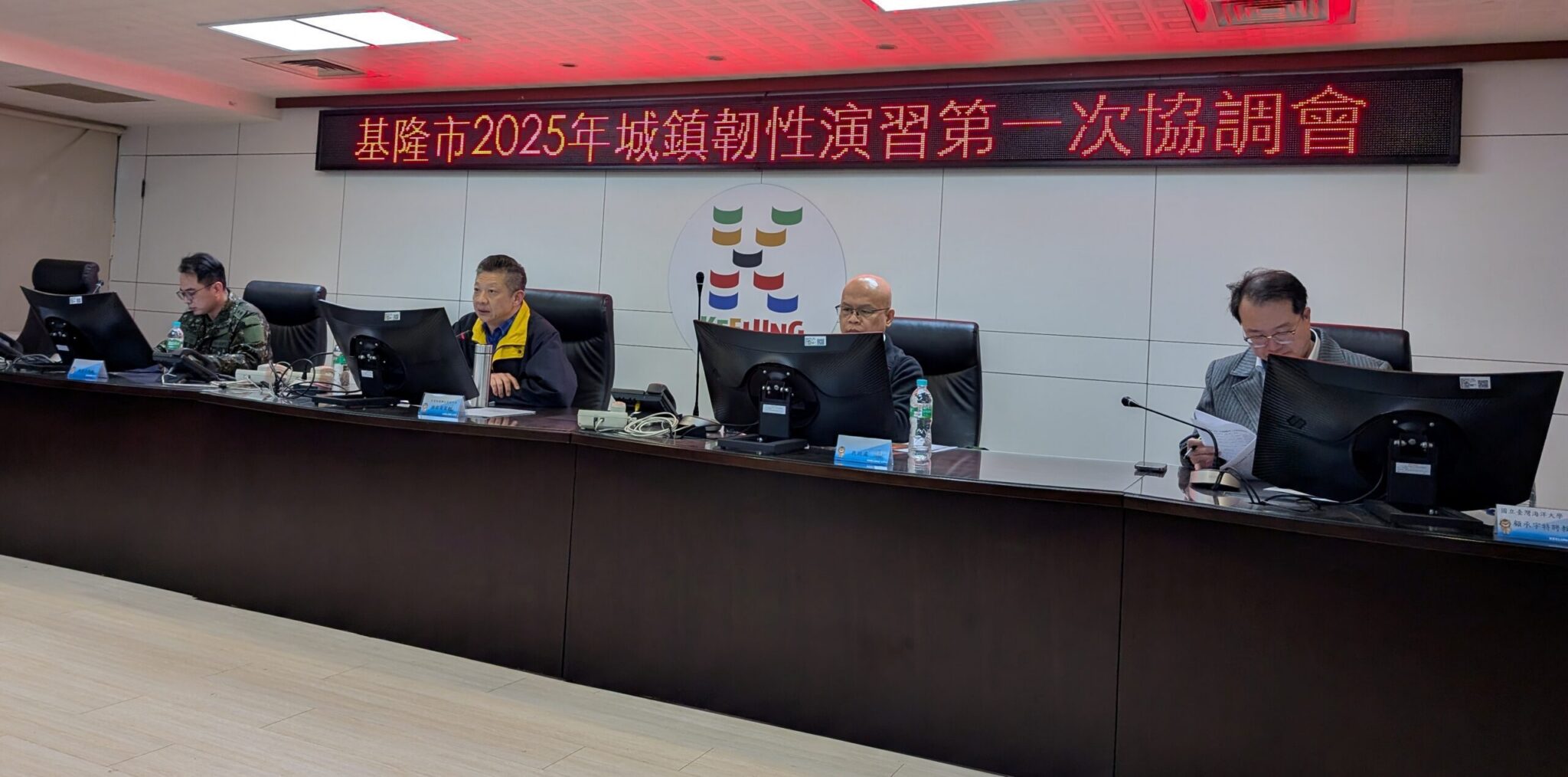 基隆市為規劃年度防災演習,強化動員準備具體作為,於2月10日下午在災害應變中心,召開「2025年城鎮韌性(全民防衛動員)演習」協調會議。會議由基隆市災害防救辦公室副主任消防局長游家懿主持,民政處科長郭鴻章、後備指揮部黃主任及海洋大學副校長顧承宇協同主持,並邀集市府產發處、社會處、衛生局、各區公所及管線單位等共34個單位出席會議。