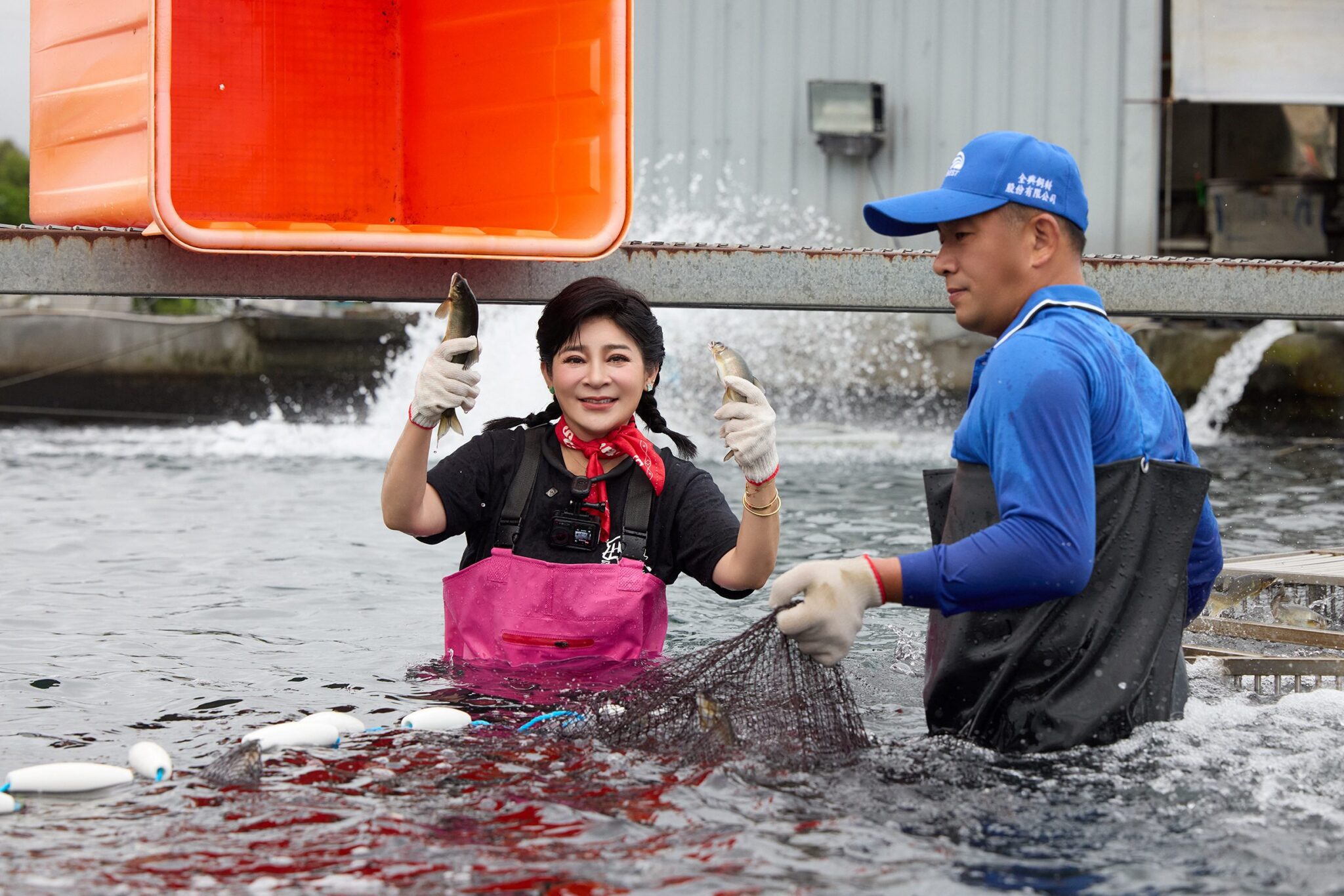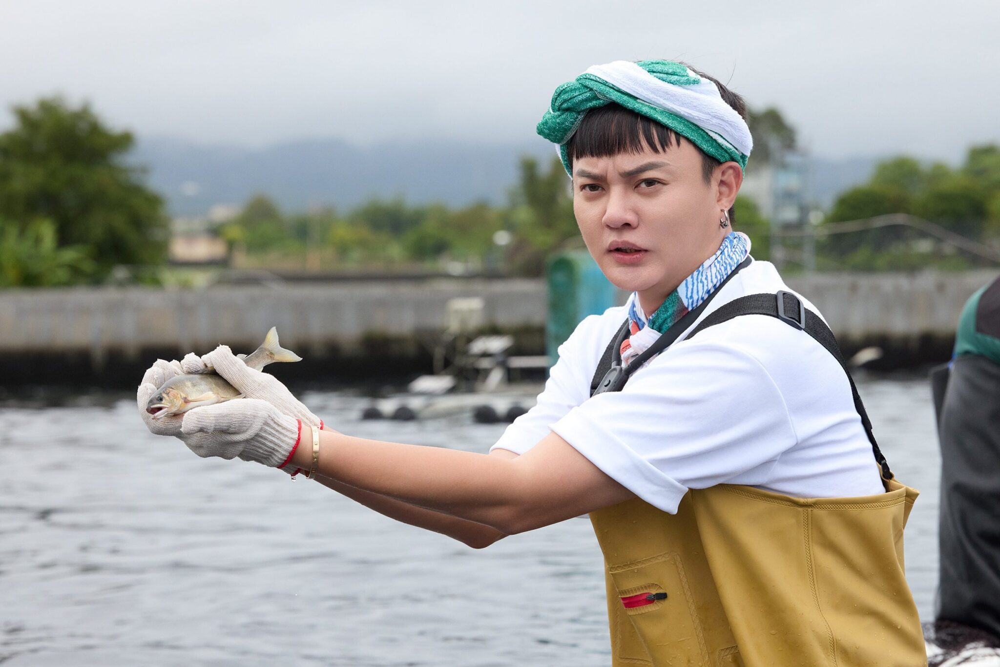從沒下過魚池的許富凱和庭庭香魚搶收大戰     照片提供:三立