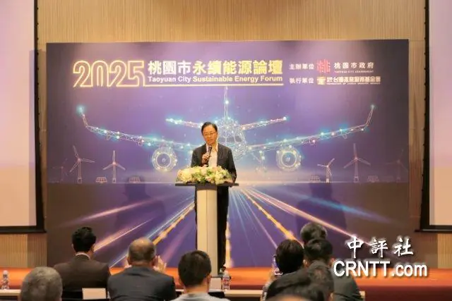 桃園市長張善政26日出席“2025桃園市永續能源論壇”。(中評社)