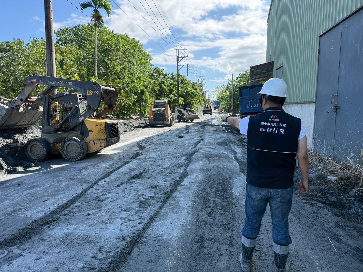中市建設局補充,部分民宅內厚重淤泥乾化後難以清理,因此特別調派怪手與山貓進駐,以機械能量取代人力負擔,加速環境恢復。建設局強調,將持續支援人力與機具,與地方攜手努力,盼望災區早日走出陰霾、迎向平安。