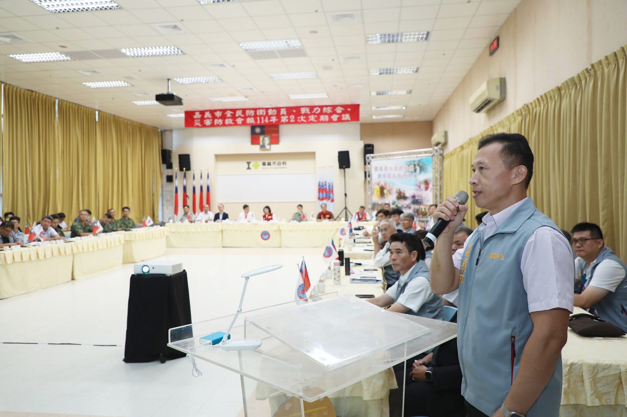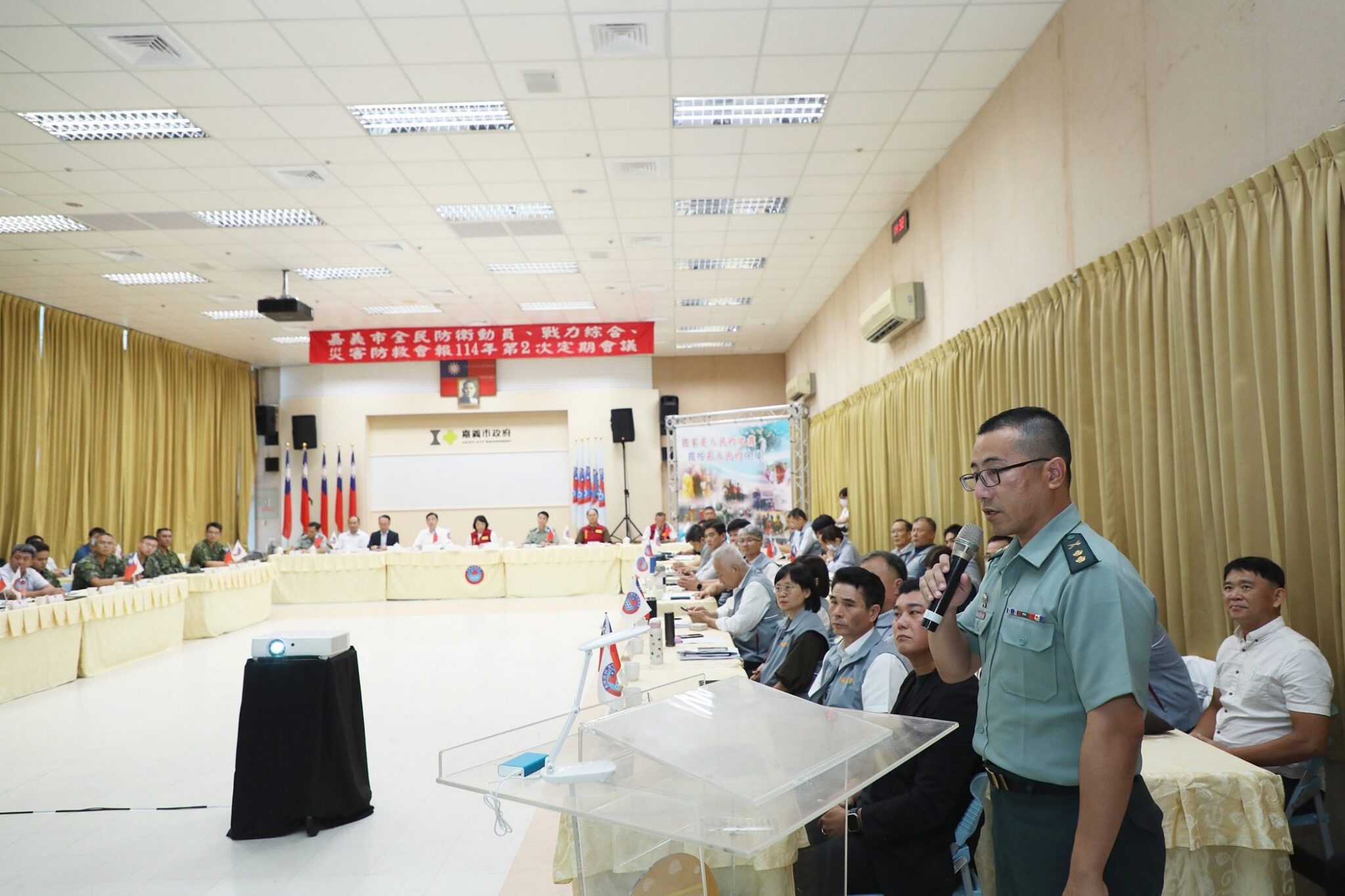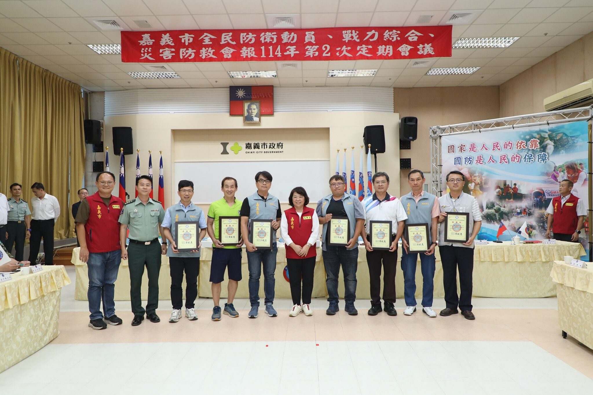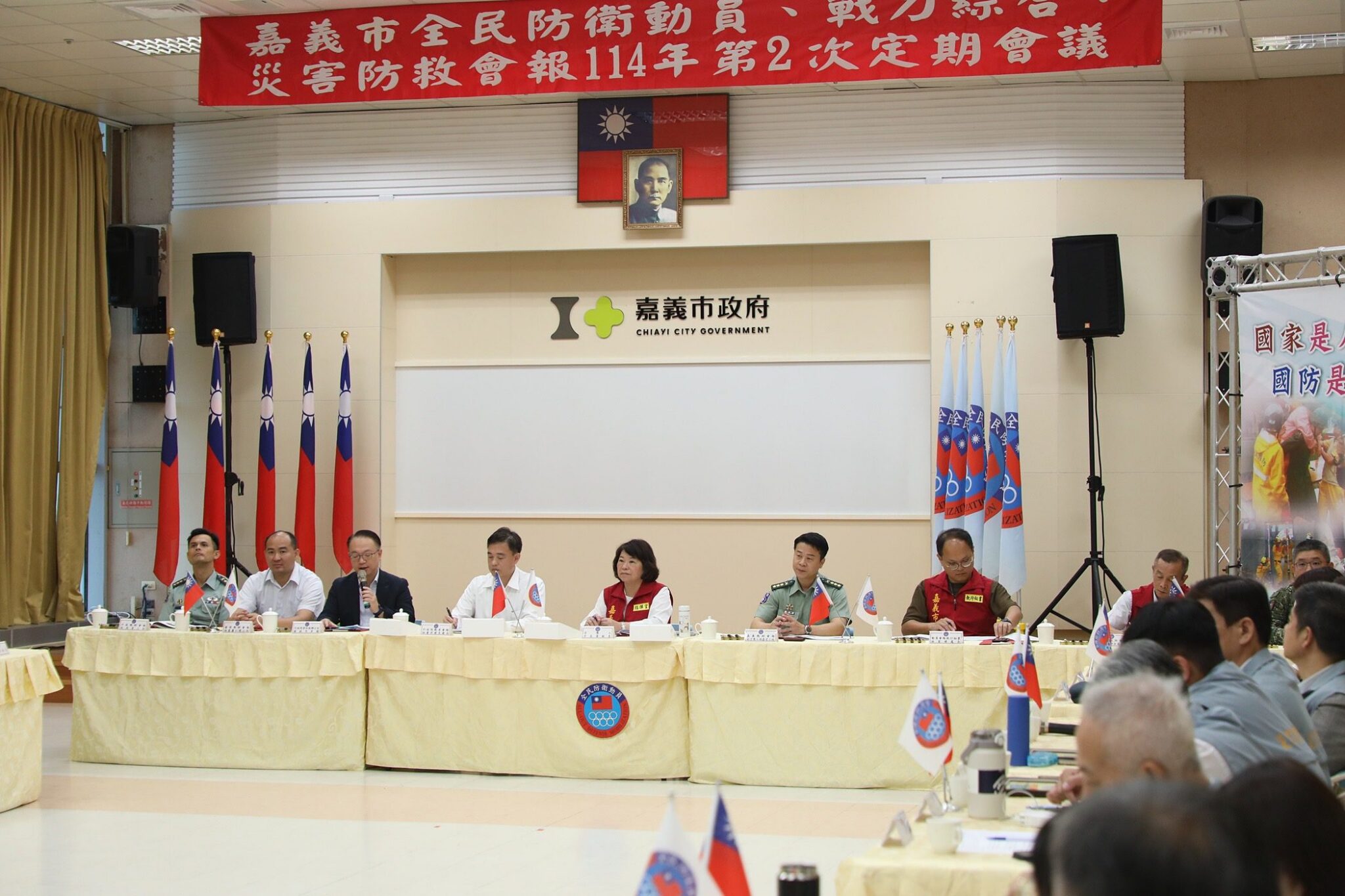 114年度全民防衛動員、全民戰力綜合協調、災害防救三合一會報第2次定期會議今(30)日於嘉義市政府8樓會議室召開,由市長黃敏惠親自主持,並由行政院動員會報、行政院災害防救辦公室、臺閩全民戰力綜合協調會報、中部地區後備指揮部、雲嘉作戰分區等中央單位共同參與。