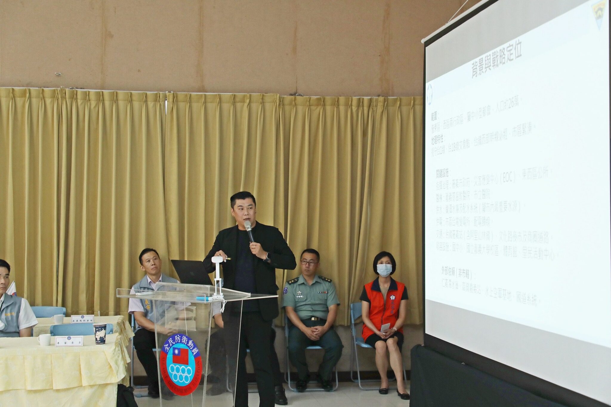 這次有動員會報(民政處)、戰綜會報(嘉義後備指揮部)、災防會報(消防局)等三會報工作報告。專題報告邀請國立中央大學林岡緯講師針對「高強度灰色地帶行動及瀕臨衝突狀態下應處作為」實施報告,另外於專題報告前亦邀請法務部調查局嘉義市調查站針對國際情勢、兩岸及國內情勢分析實施報告。