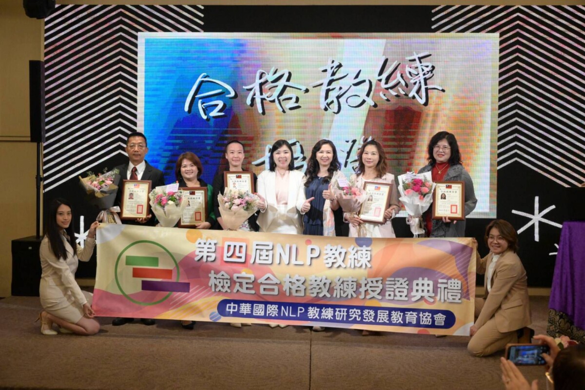 本屆授證典禮最令人振奮的是參與檢定考試的八位夥伴全員通過。NLP(Neuro-Linguistic Programming,神經語言程式學)結合教練為一門強調語言、思維與行為模式的技術,能夠協助個人突破自我限制,並運用在生活、職場與助人領域。本屆的合格NLP教練中,有人希望透過此檢定考試驗收自己的學習成果,也有人懷抱著助人初衷全力投入考核。