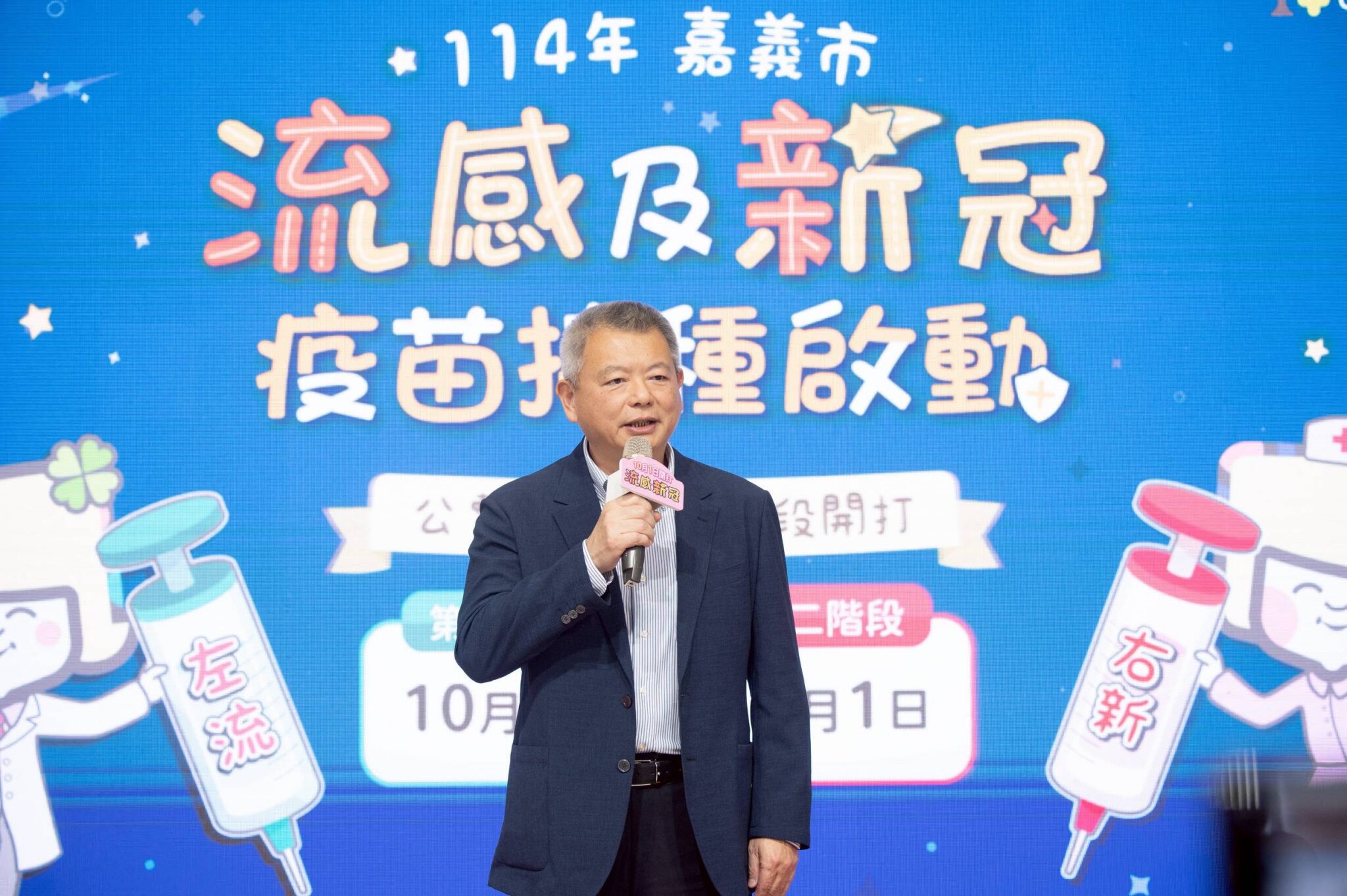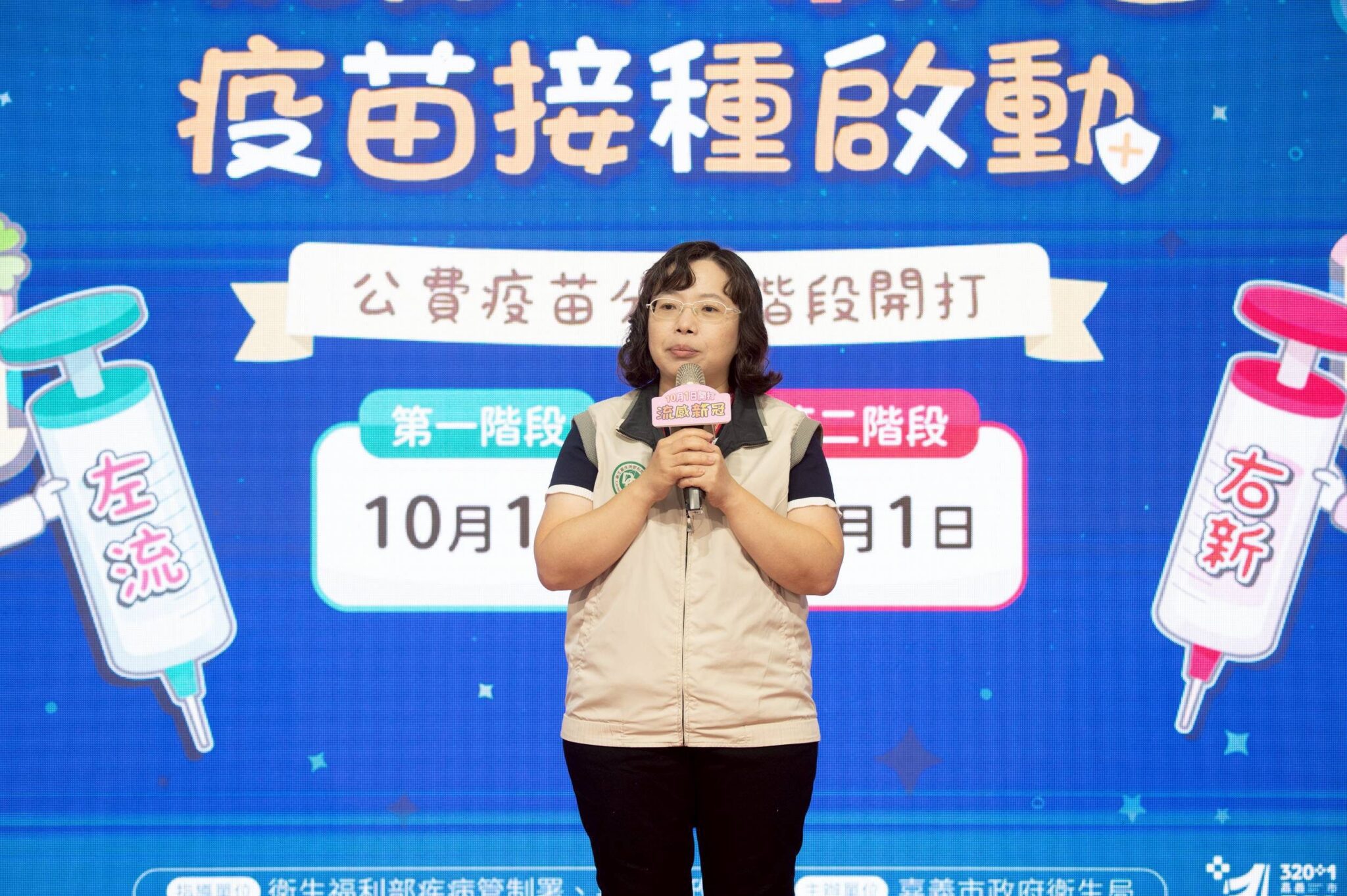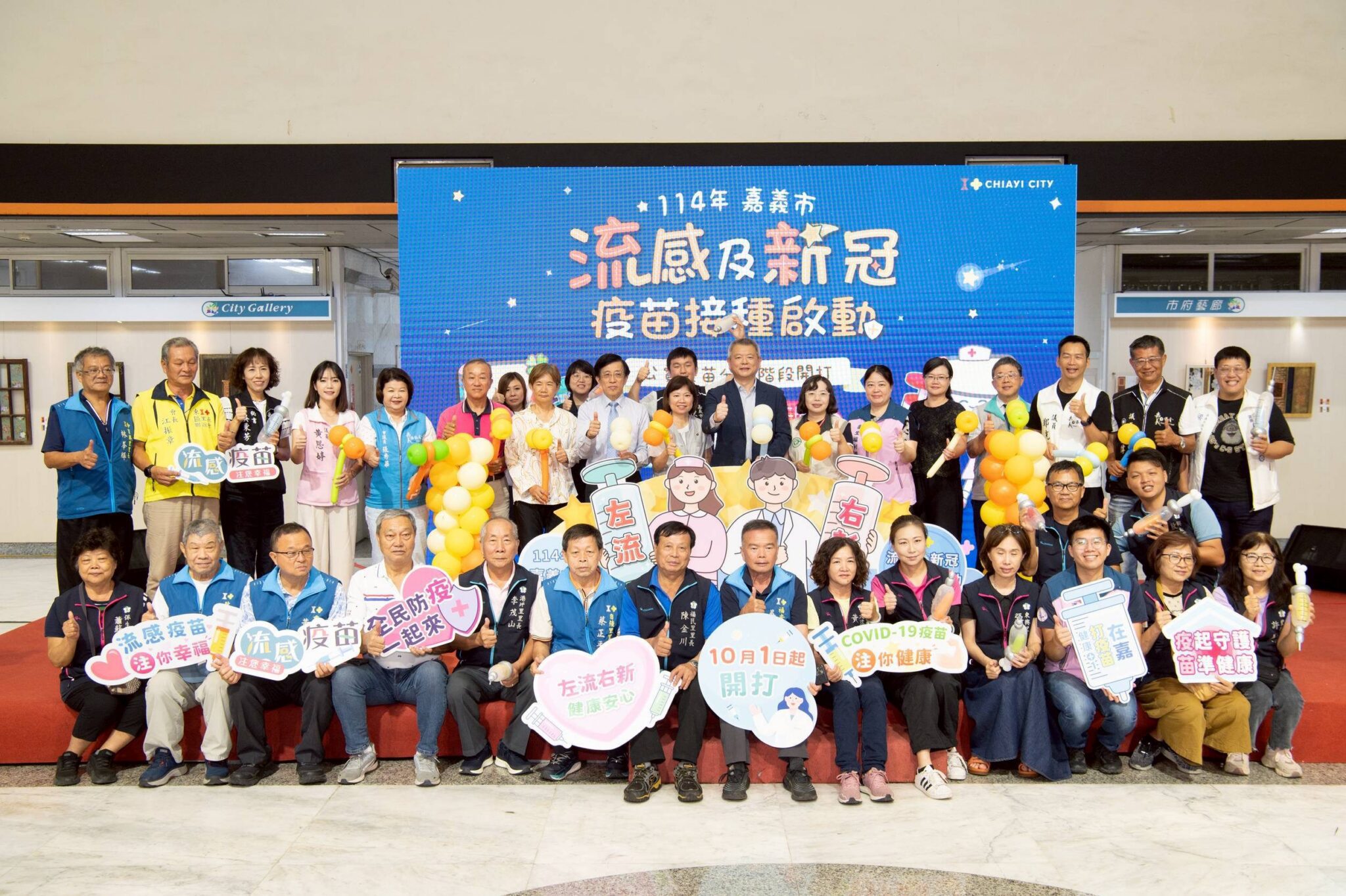 10月1日起公費流感、新冠LP.8.1疫苗分兩階段開打。今(1)日嘉義市副市長林瑞彥代表市長黃敏惠,偕同衛生福利部疾病管制署南區管制中心李珍儀科長、多位醫院代表、議員及里長宣布流感與新冠疫苗即日起同步開打,呼籲民眾踴躍接種。