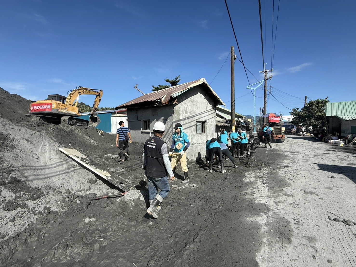 花蓮馬太鞍溪堰塞湖溢堤,導致道路中斷、住家與農地嚴重淤積。台中市政府建設局救災團隊持續支援,其中更有隊員家屬也參加「鏟子超人」志工行列,共同為花蓮災區努力。昨(30)日除道路復原外,更深入民宅勘查,了解居民受災情況,並立即調度人力與機具展開清理。厚重泥沙逐步被清除,受災鄉親激動表示「看見台中隊到來,心裡終於踏實」,更感謝重機具的加入大幅加快復原進度。