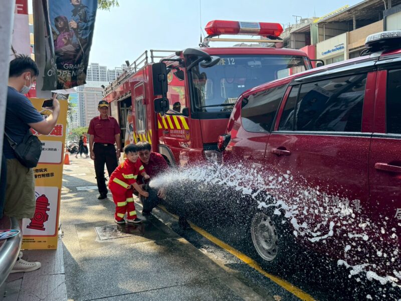 4. 救火英雄 – 孩童穿上迷你消防裝備,搭乘兒童消防車並操作水槍滅火,親身體驗消防員的使命感與榮譽感。