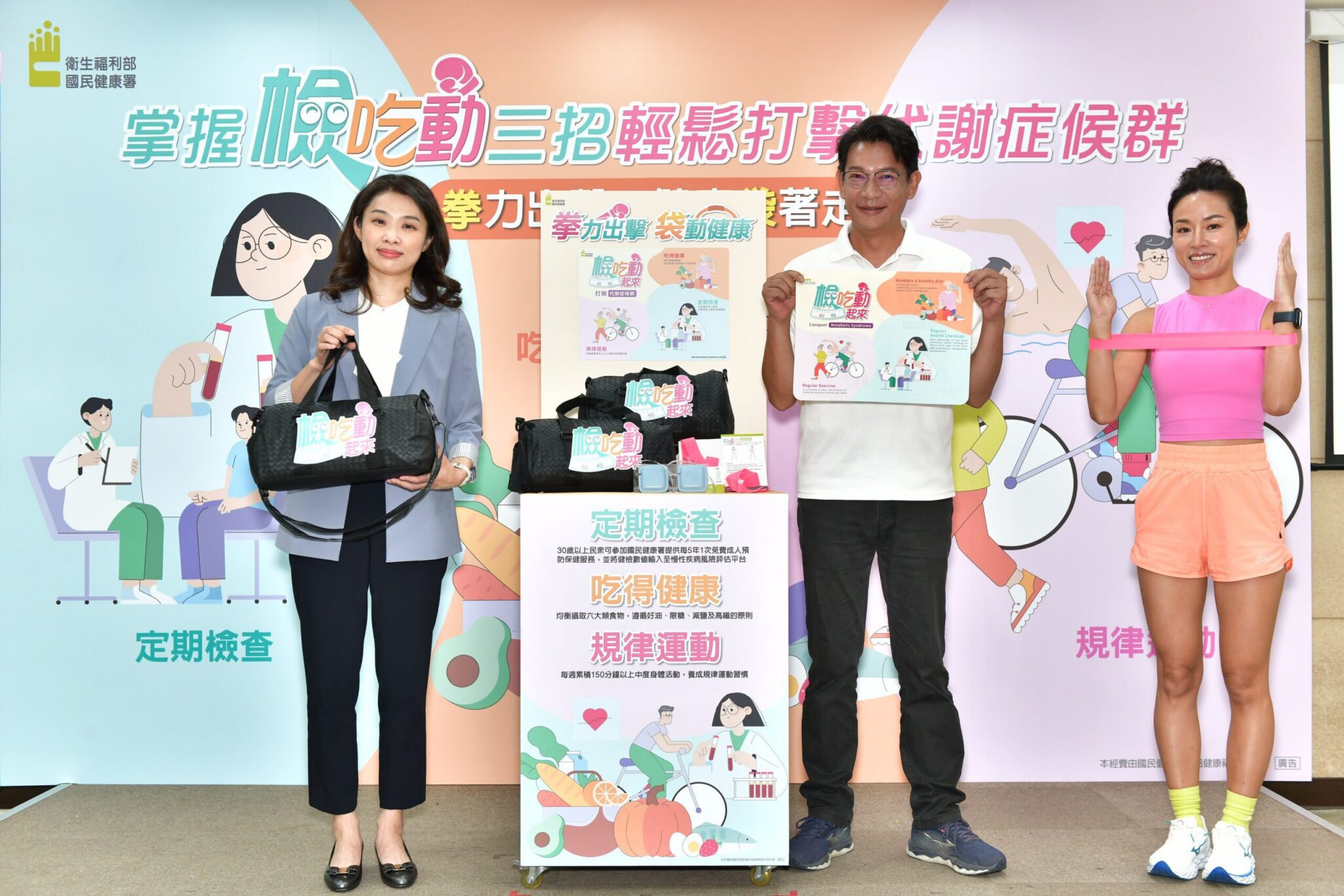 根據成人預防保健服務資料顯示,我國40至64歲接受檢查的民眾約有3成患有代謝症候群。國民健康署呼籲國人掌握「檢、吃、動」攻略:定期檢查、健康飲食、規律運動。今年更首度結合原創歌曲,推出簡單易學的「檢吃動健康拳」及「健康袋」好禮,邀請全民一起動起來。