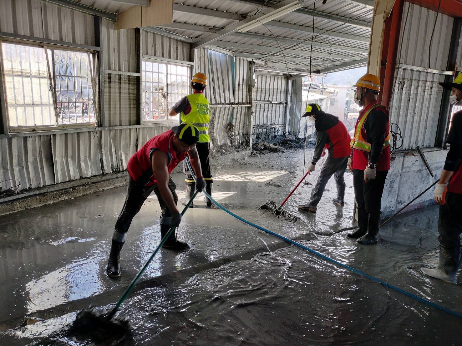 邱雅琳隊長指出,昨(1)日環保局與市府養工處一同進駐大馬村武昌街,有一處住家內雖已初步剷除淤泥,但地板與牆面仍覆滿厚厚一層污泥。環保局利用清溝車水柱大面積沖洗,再搭配人力刷洗,讓埋沒於烏黑淤泥下近10天的地板終於重現原來的地磚顏色,屋主黃阿嬤感動表示:「房子內家具幾乎全毀,但人平安就好!還好有台中市來幫忙,感覺復原看到了希望。」