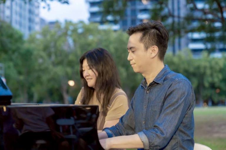 ▲市長鄭朝方與鋼琴家呂冠葶合作演出。 (圖/記者蔣彤雲攝)