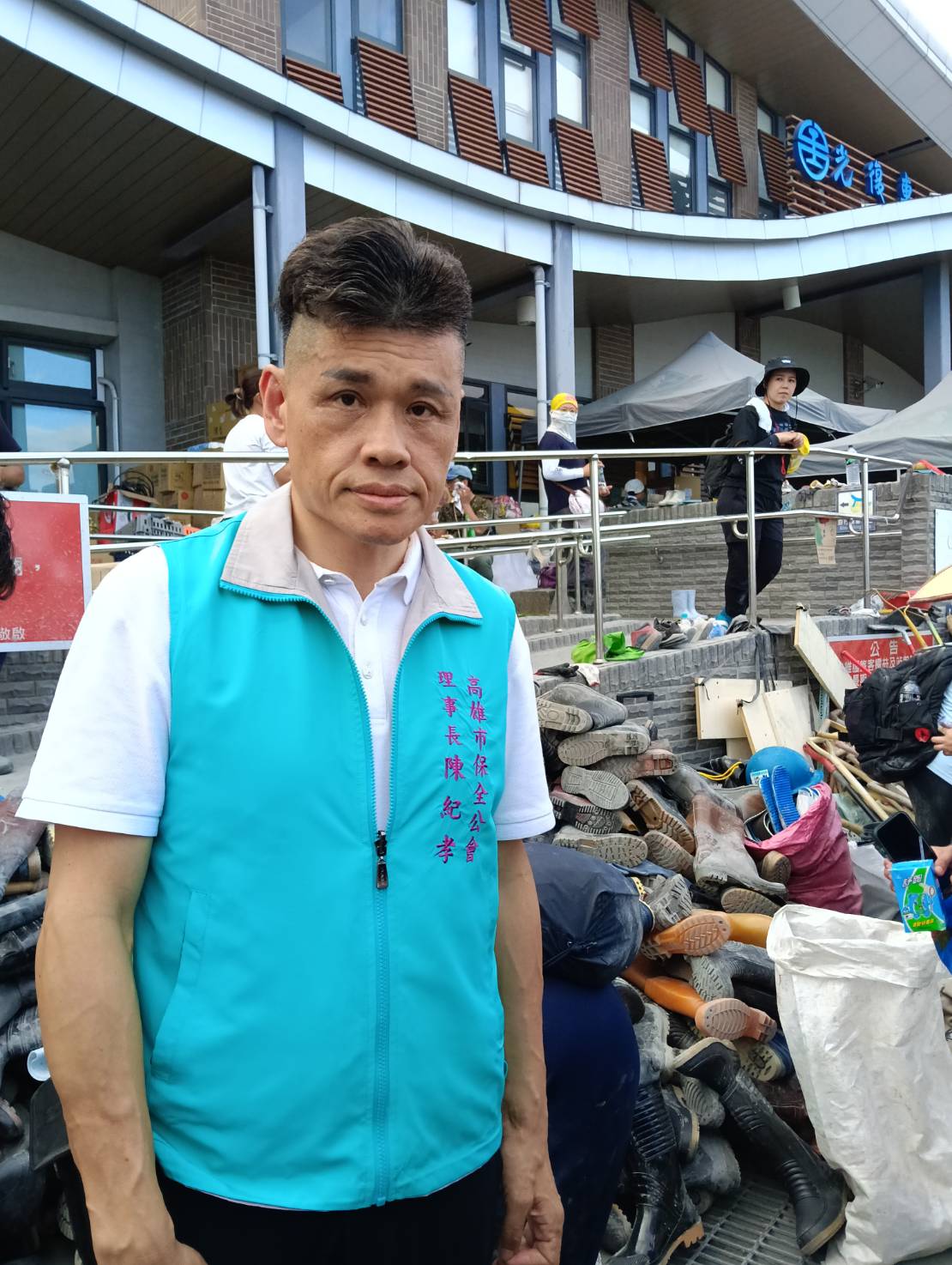陳紀孝與高雄市保全商業同業公會秘書長林錫淵、常務理事李茂全、理事鍾宛琪,另外公會顧問劉邵智、翁銘祥、羅珮旻等人抵達光復災區,大家目睹災區一片狼藉、滿目瘡痍,真實感受災民們失去家園的無助與傷痛感。陳紀孝表示,到了災區現場,感受到災民的苦。