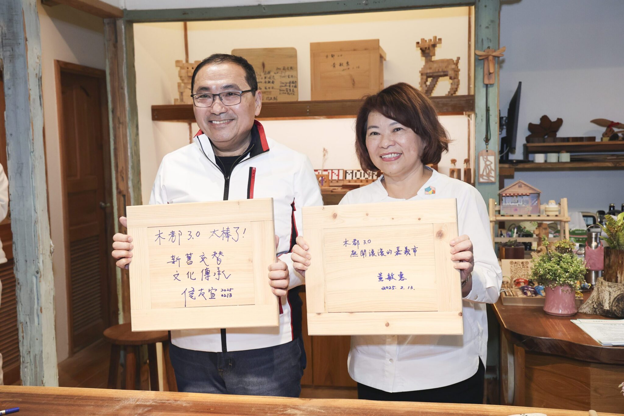 嘉義市是阿里山的入口門戶,也是阿里山森林鐵路的起點。昔日因林木產業興盛,享有「木都」美名。為推廣「木文化」價值,嘉義市長黃敏惠與新北市長侯友宜,今(13)日下午前往嘉義舊監宿舍群,並參訪進駐戶之一「福樟良材木創工坊」,體驗木業手作。侯友宜力讚黃敏惠對於木業的重視與人才培育,更期待中央支持輕軌建設,讓嘉義市有更好的發展前景。