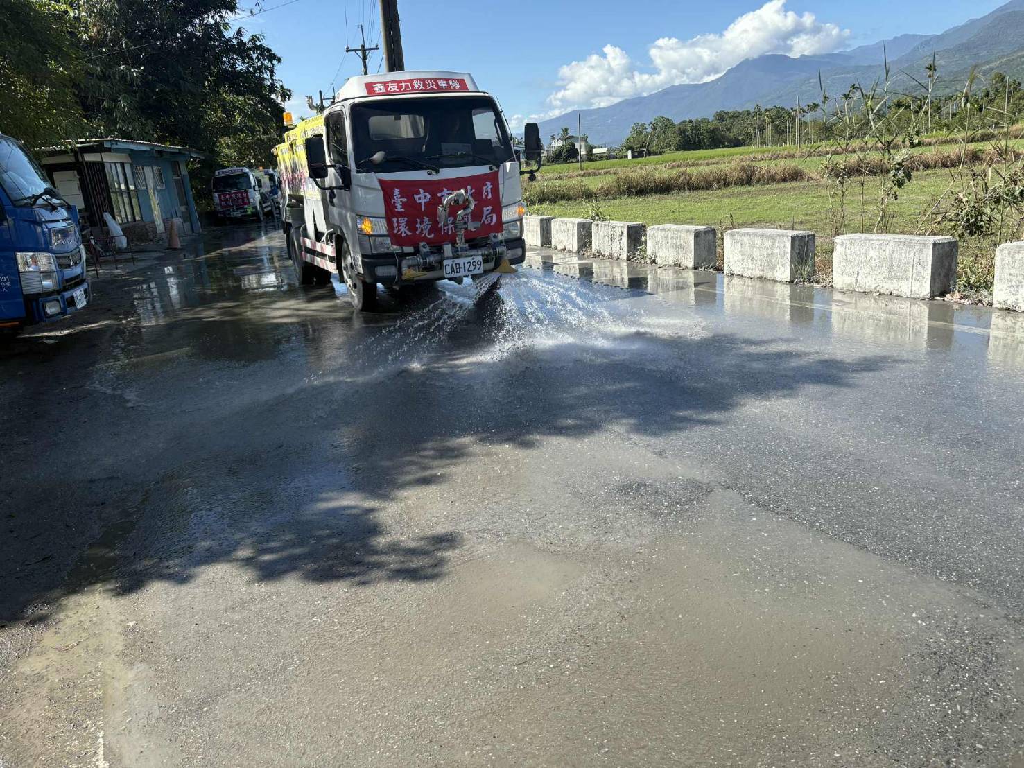 環保局說明,第一波救援工作由大肚區清潔隊大隊長何國仲率領,共6名同仁及2台大型掃街車,期間連續3天投入救災,完成中山路一段、中興路、糖廠街、光復糖廠及土方暫置區等重要區域,期間同仁揮汗清理滿布淤泥的道路,也主動協助居民清理環境,展現「台中隊」的專業與熱忱。